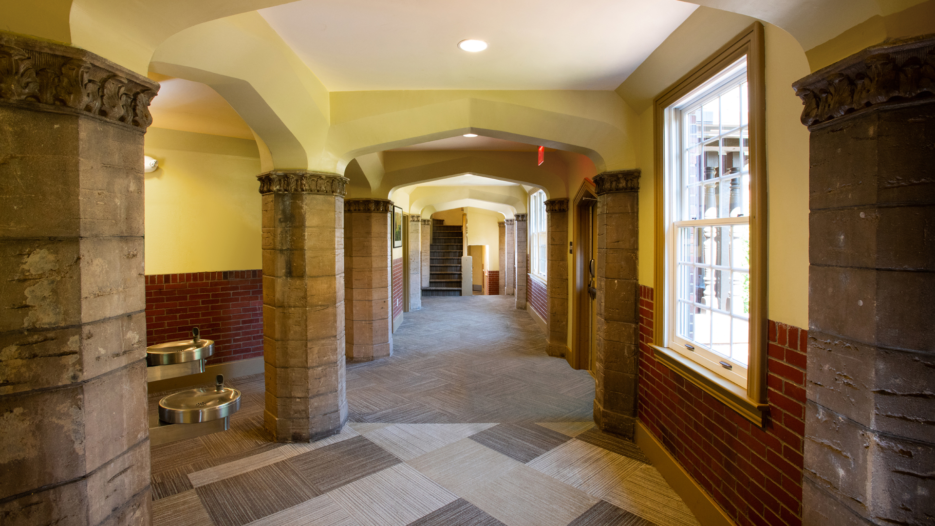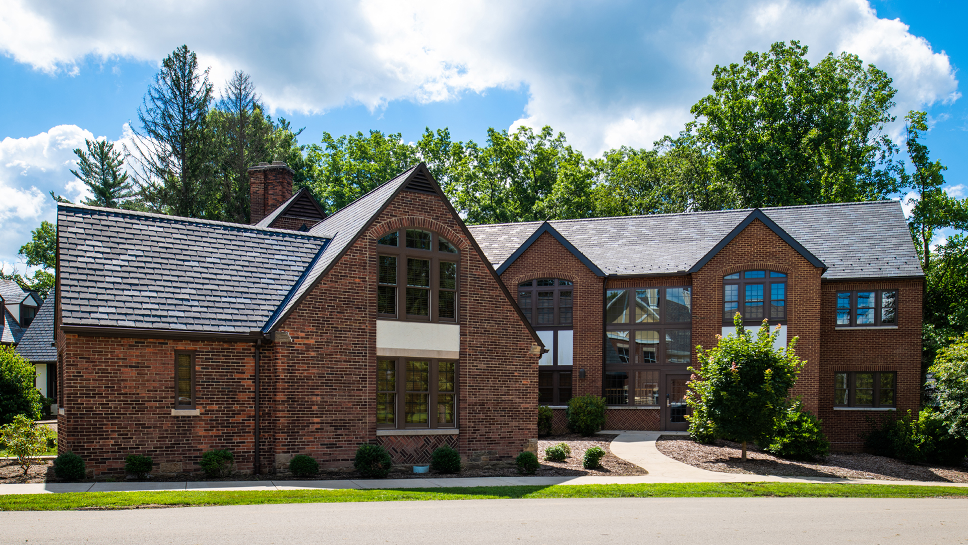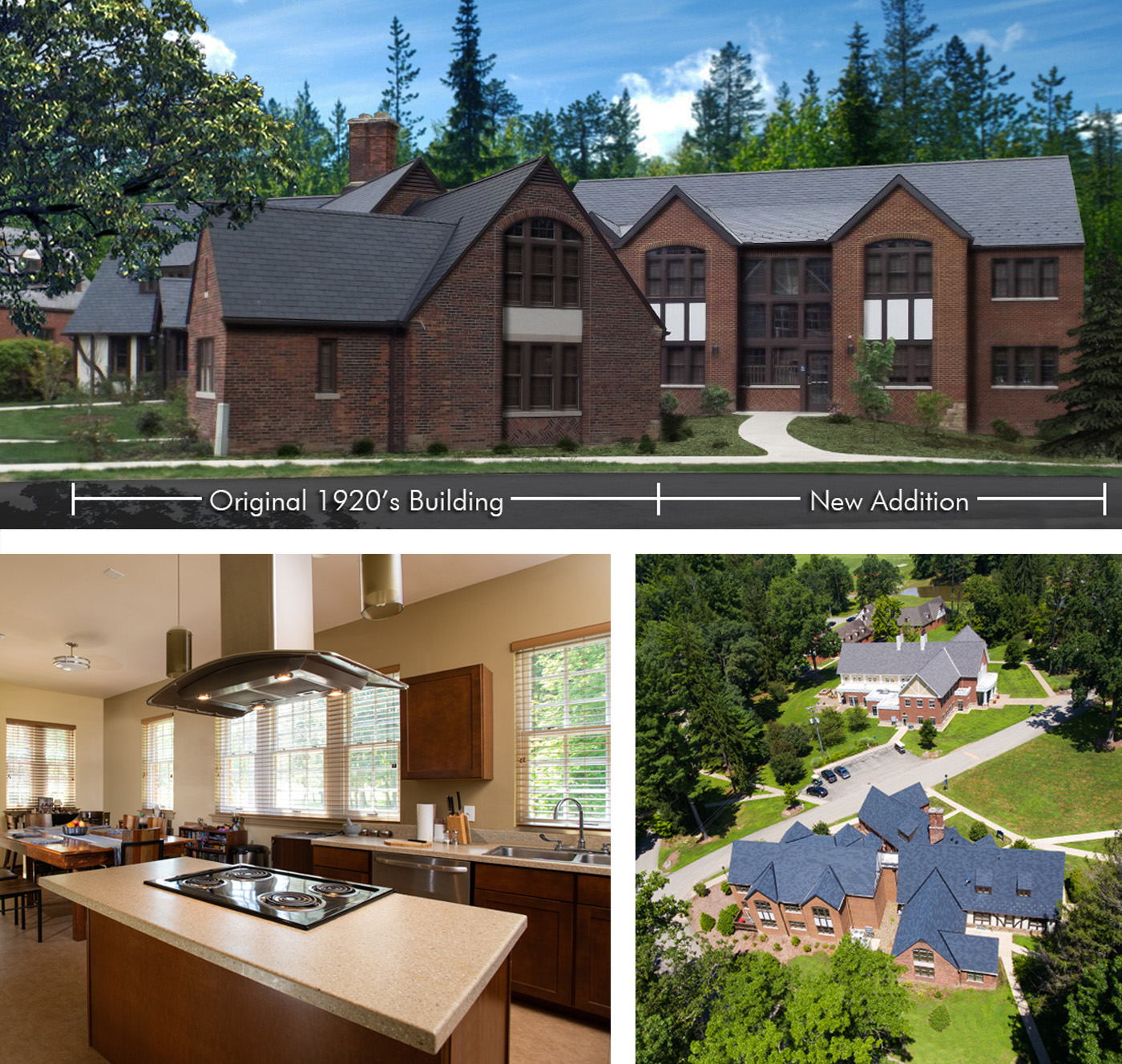 The design embraced the Tudor Revival style of the original building, constructed in 1930, and featured a sensitive addition that presents modern housing through 6 double-occupancy rooms and a faculty apartment. Renovation plans for the existing building refurbished 13 student rooms and 2 faculty apartments. Wherever possible, existing materials from the renovation were repurposed on the site to suit various uses, such as landscape walkways. With multiple sustainability measures, the project achieved LEED Silver certification.