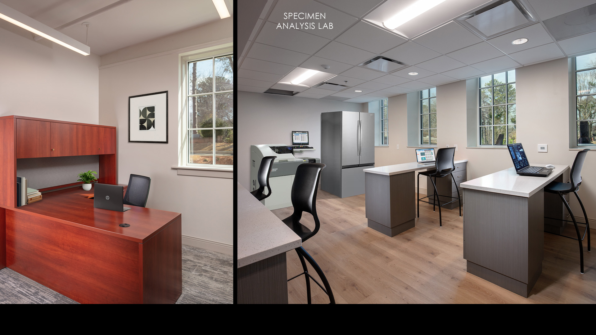 This design creates a new welcoming entrance with accessibility to better support this new public function. The new glass pavilion addition serves as both a functional connector and an architectural feature, improving vertical circulation, opening the interior to natural light, and reinforcing the building’s new identity.