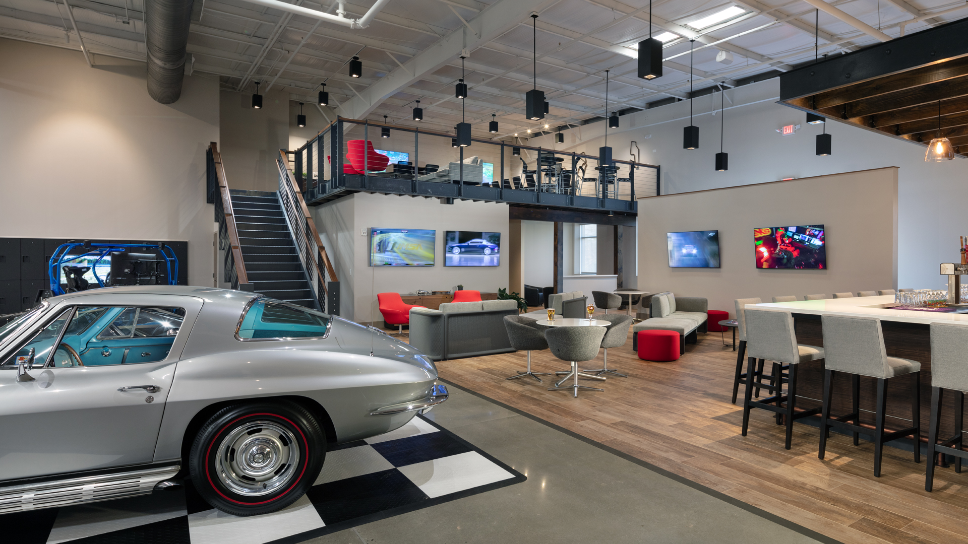 Atlanta Motorcar Club’s conditioned, secure facility houses exotic, rare, and classic vehicles within a social, country club environment. POH+W Architects’ design creatively organized the space to emphasize the unique collection of vehicles.