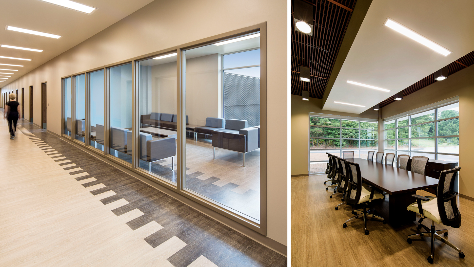 POH+W Architects design for this healthcare facility highlights flexibility, including a framework that adapts to the center’s current needs and leaves room for future accommodations. The secure building supports a variety of healthcare classifications.