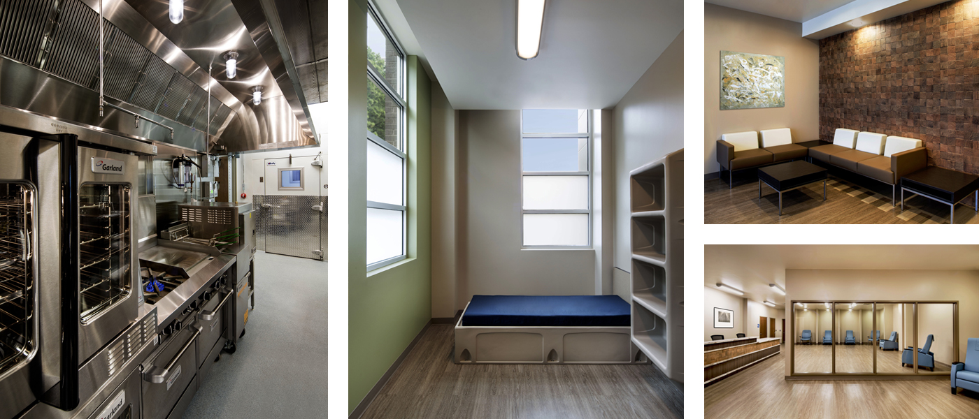 The modern exterior symbolizes the forward-thinking approach to the mental health services. The 2-story facility allows for a significant amount of growth without requiring an addition. The nurses’ station anchors the dining area and patient room. The facility offers an assortment of services including psychiatric care, behavioral stabilization, and detoxification.