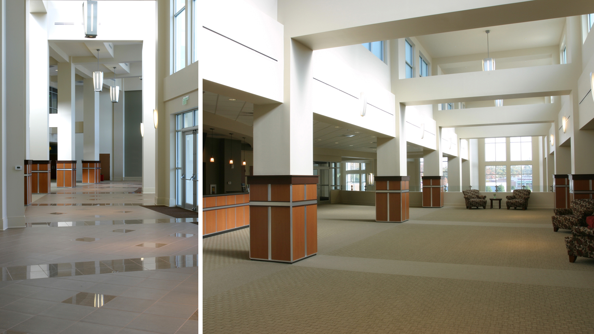 A new two-story entrance and lobby connecting the sanctuary to the new two-story Children’s Education wing provides the much-needed fellowship space. Two children’s theaters were designed to provide the youth with a superior worship experience.