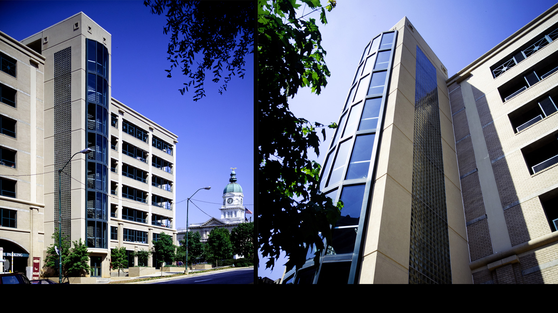 This compact, 8-level parking deck accommodates 345 cars. Designed for the historic district of downtown Athens, POH+W Architects chose proportions, window patterns, and materials like those of nearby buildings. The exterior consists of brick and precast concrete over a reinforced-concrete frame. The deck received a design award for Outstanding Achievement in design from the Georgia Chapter of the American Concrete Institute.