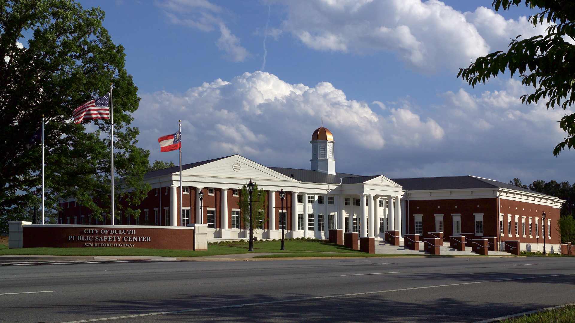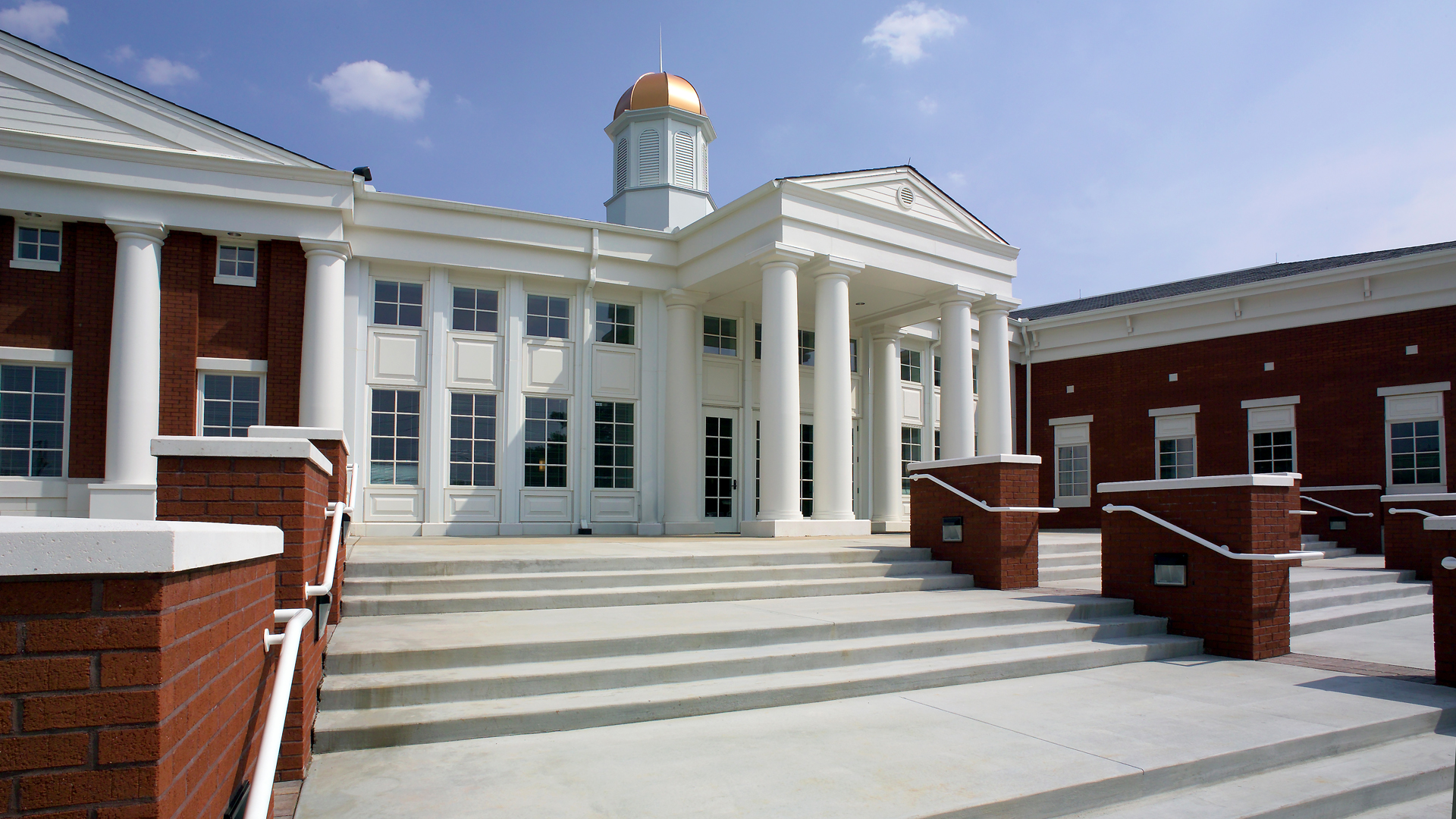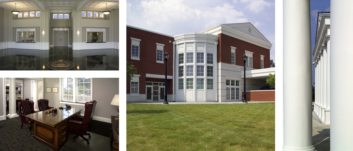 While the Police Department and Municipal Court share a common lobby, POH+W Architects designed an exterior to give each function its own visually independent identity. The multi-use complex is connected with the impressive glass windows daylighting the lobby. The traditional presentation is consistent with the values of the small southern town.