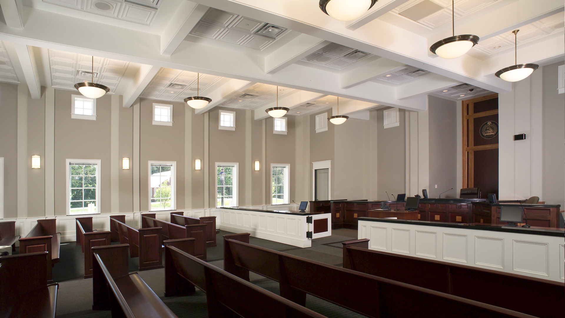 The enormous, 250-seat daylit courtroom, allows for the Chief Judge and Court Administrator to efficiently adjudicate cases of alleged violations of local ordinances. Adjacent to the courtroom are the judge's chambers, probation and solicitor’s offices. Visitor’s circulation is restricted and tightly controlled.