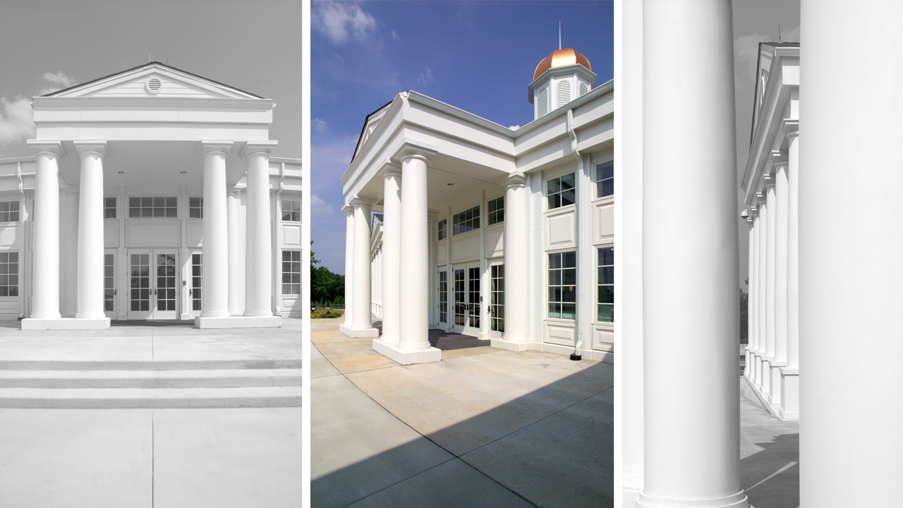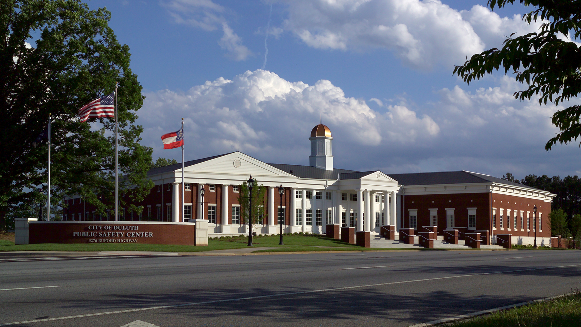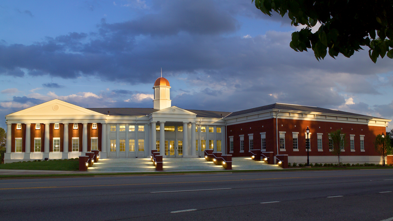 While the Police Department and Municipal Court share a common lobby, POH+W Architects designed an exterior to give each function its own visually independent identity. The multi-use complex is connected with the impressive glass windows daylighting the lobby. The traditional presentation is consistent with the values of the small southern town.