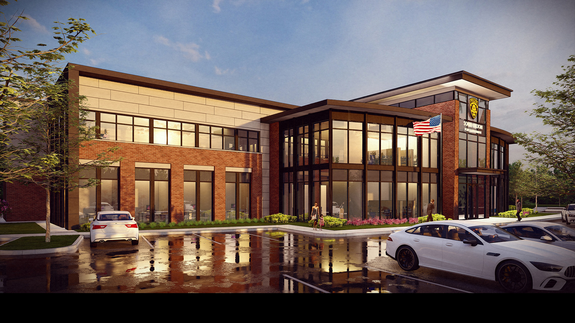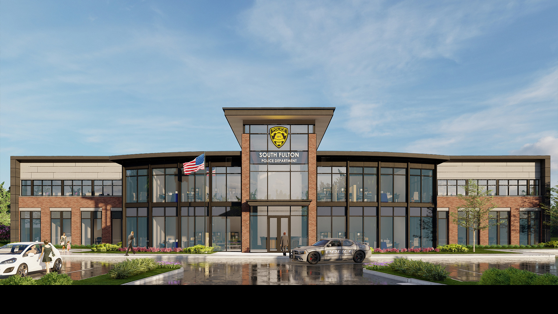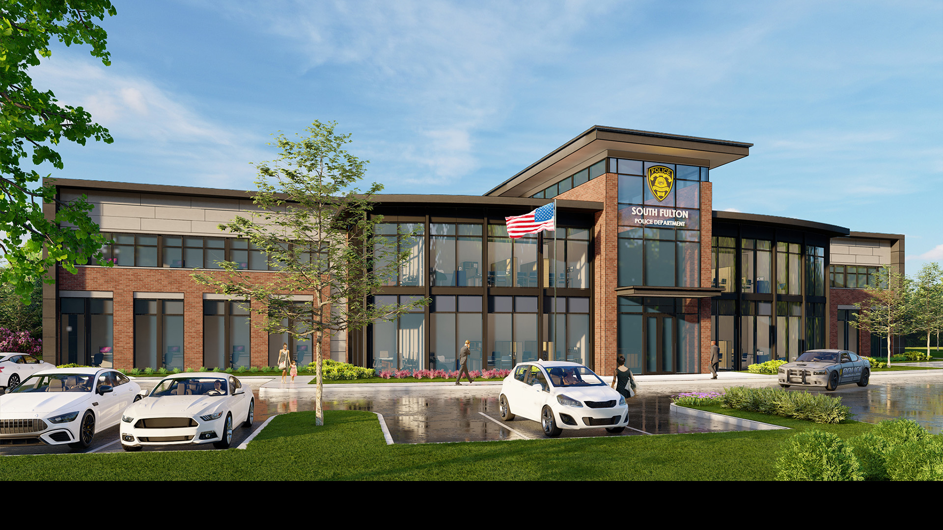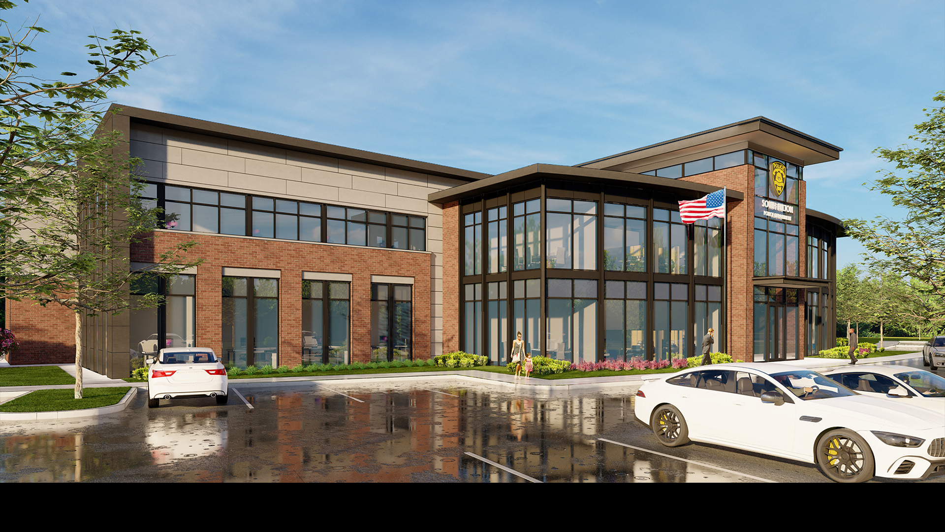POH+W Architects collaborated with the Police Chief and leadership team to develop a master plan and design a new police headquarters. The 9-acre campus is organized to include the headquarters building, parking, a future courthouse site, and a community park with supporting amenities.