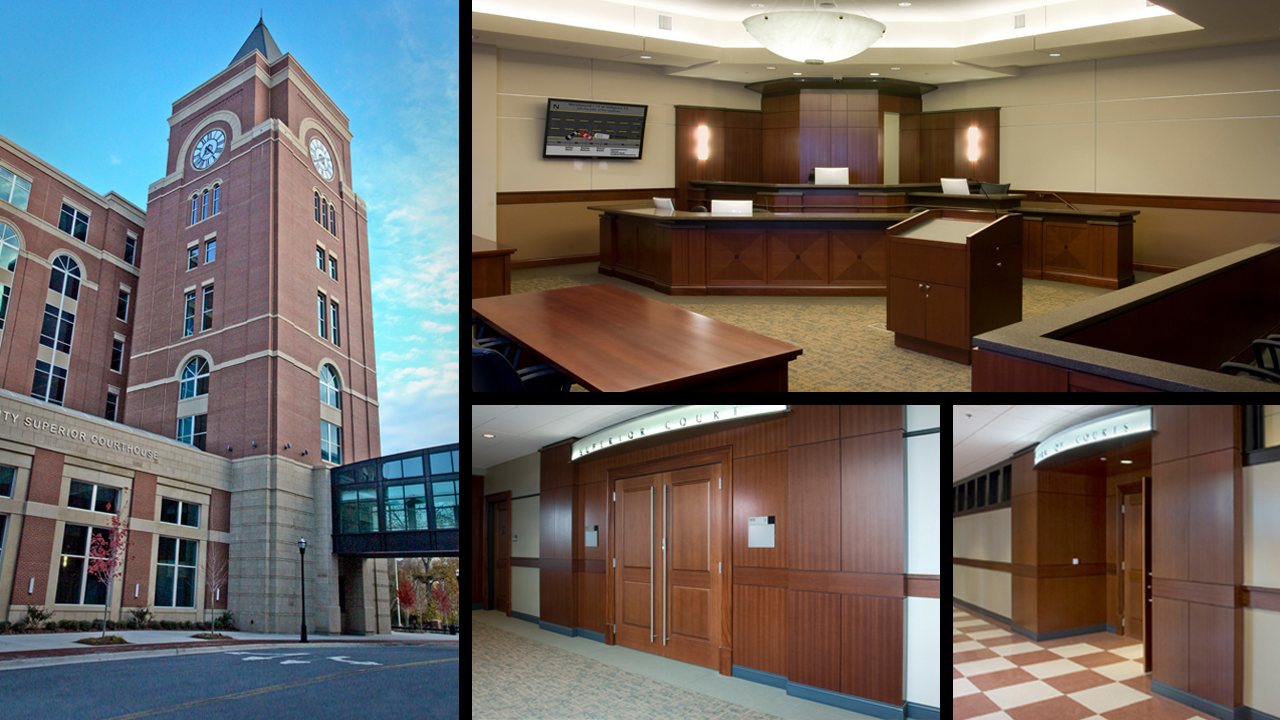 Designed to initially house seventeen courtrooms, the Courthouse was built to include an entire floor as “shell space”. This built-in future expansion space could be used for courtrooms or administrative offices depending on the future needs. A larger, center bench courtroom for high profile trials was especially designed for larger defense and prosecution teams along with a larger gallery.