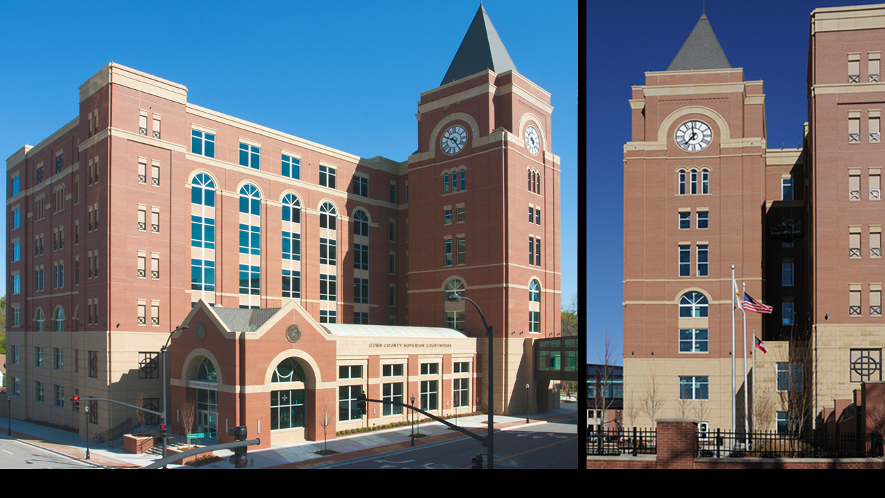 The former historic courthouse, lost to fire in the 1960’s, is still a beloved icon of the community. The clock tower, arch-top windows and other details conspired to create a character laden historic building. Cobb County leaders indicated early in the planning process that the new Superior Court building offer tribute to the original Courthouse on the Marietta Square.
