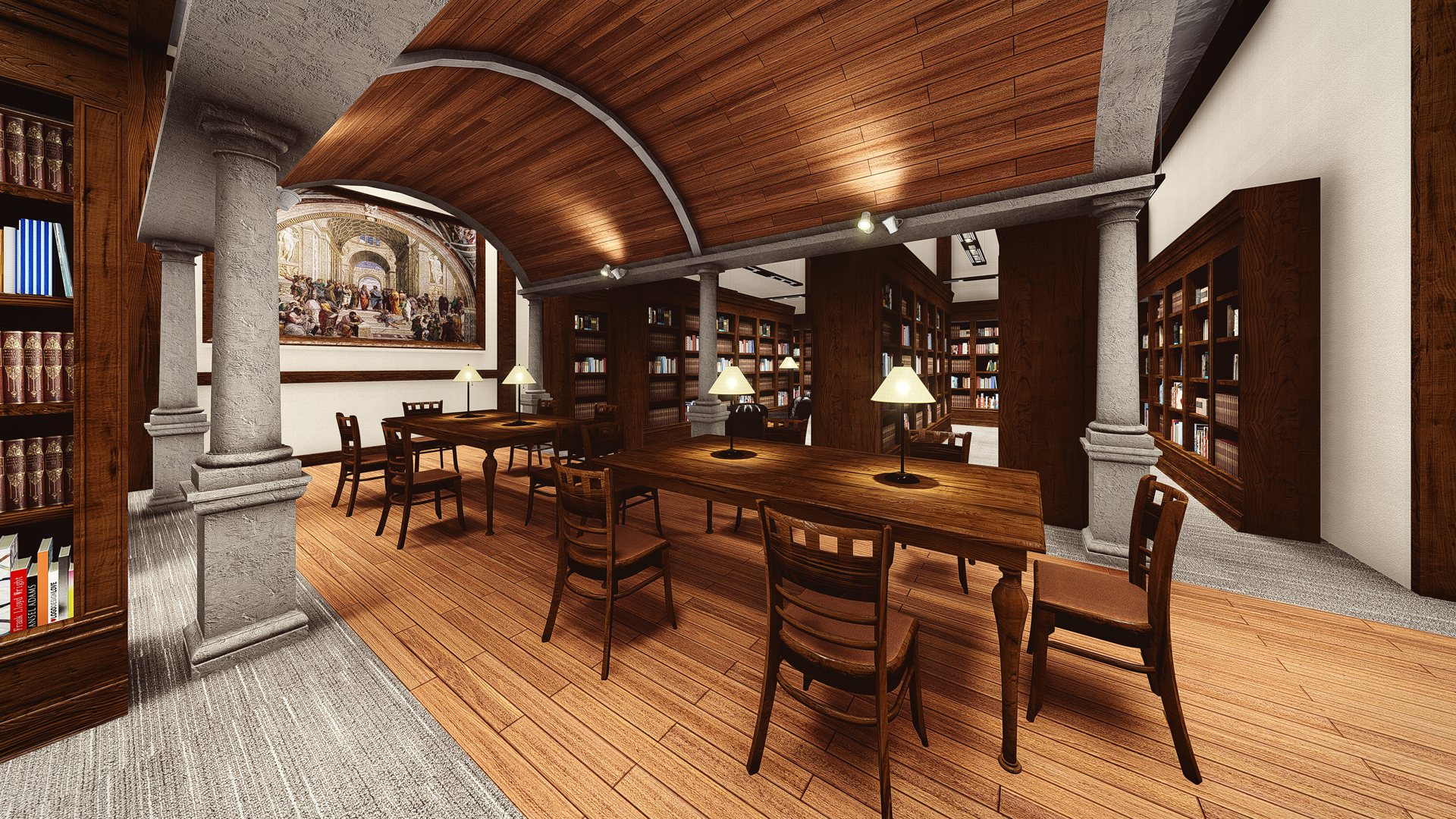 The library is publicly accessible and provides a variety of reading options including large tables and individual study carrels. The interior is designed as an elegant repository and uses materials complementary to the existing courthouse.