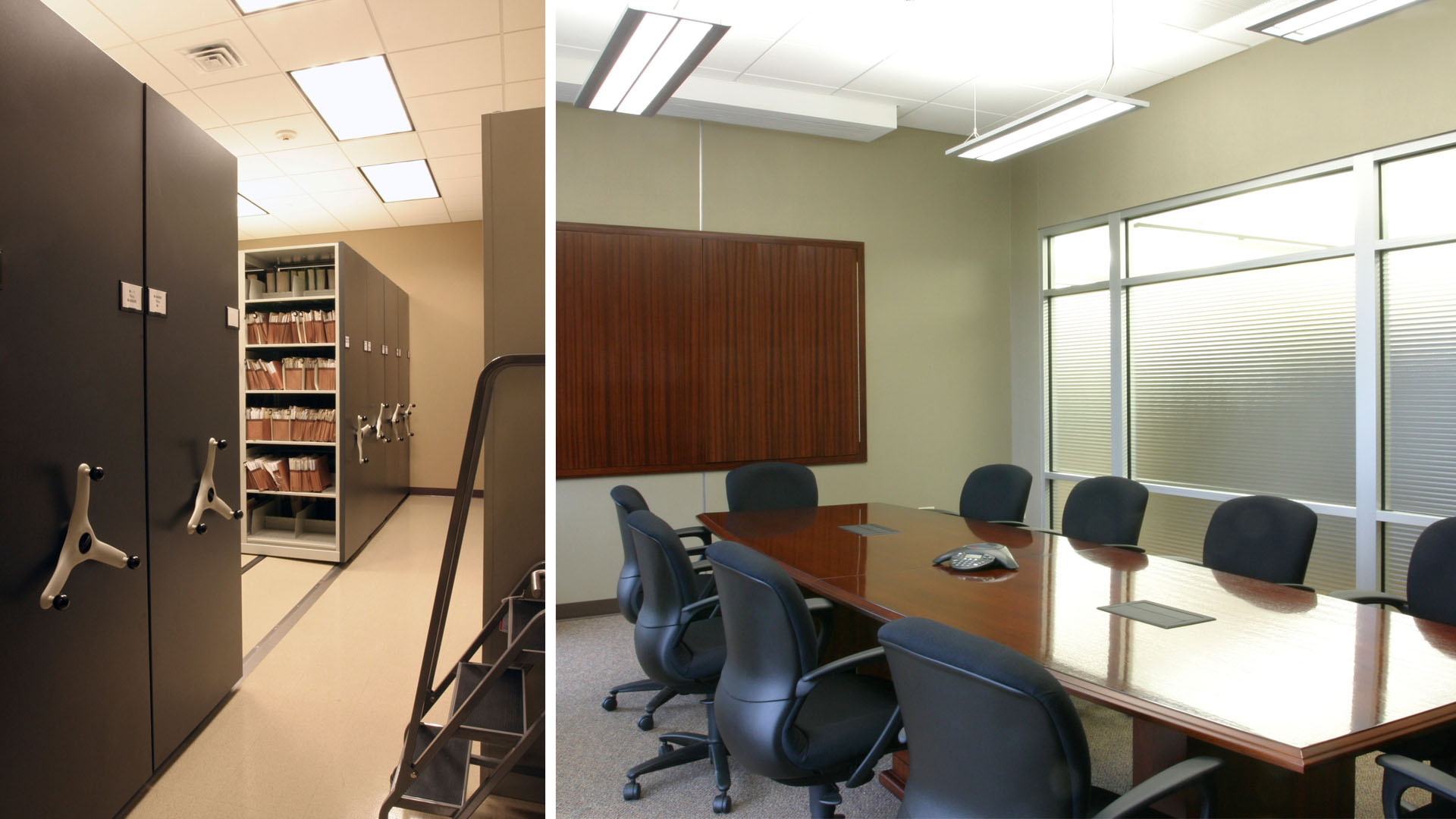 The office is organized around a center spine of shared resources. Conference rooms, printing stations and coffee bars are located on a ‘main street’ within easy access of the staff. Workstations receive natural light from strategically located glazing.