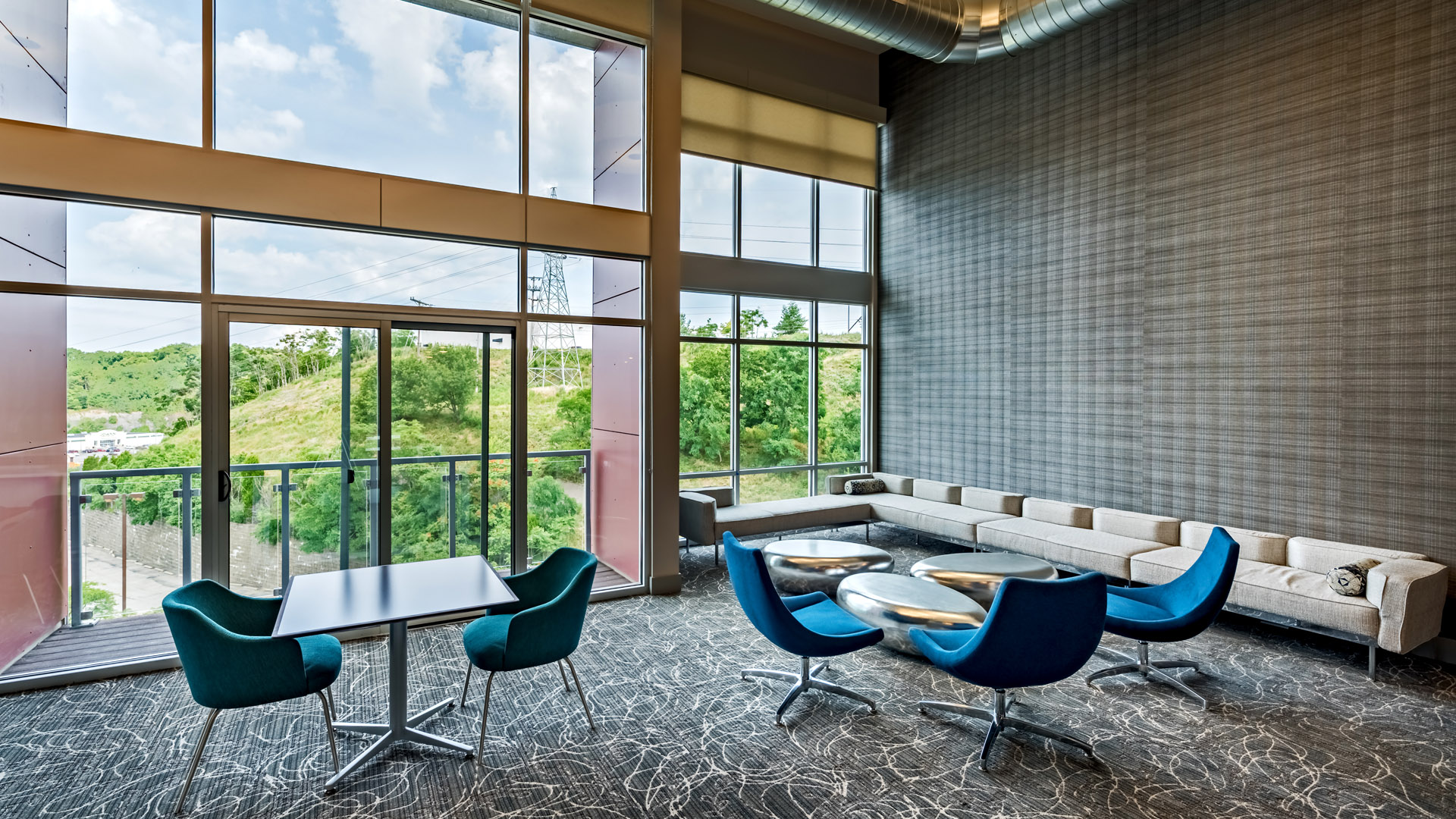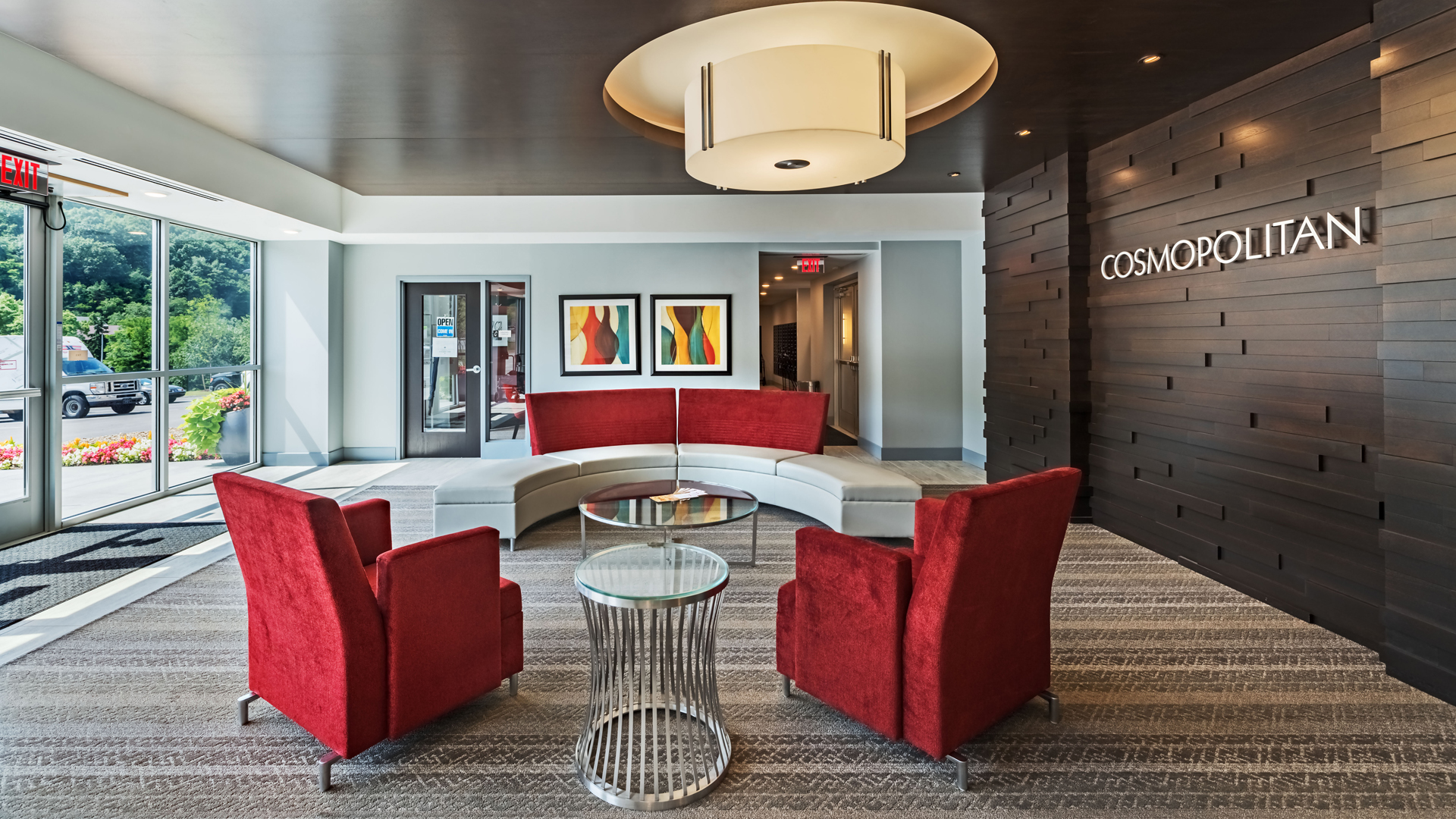 POH+W Architects, Interior Design Studio designed the six-story, 149-unit Cosmopolitan luxury apartment building. One-bedroom and two-bedroom units are complete with granite countertop kitchens, high end modern finishes and appliances to cater to millennials. Spectacular views from the lobbies, bedrooms and unit decks add to the upscale design of the building. A unique penthouse clubroom opens to a roof-top terrace that provides space to unwind while taking in the great views. The fitness center and pet washing station complete the amenities.