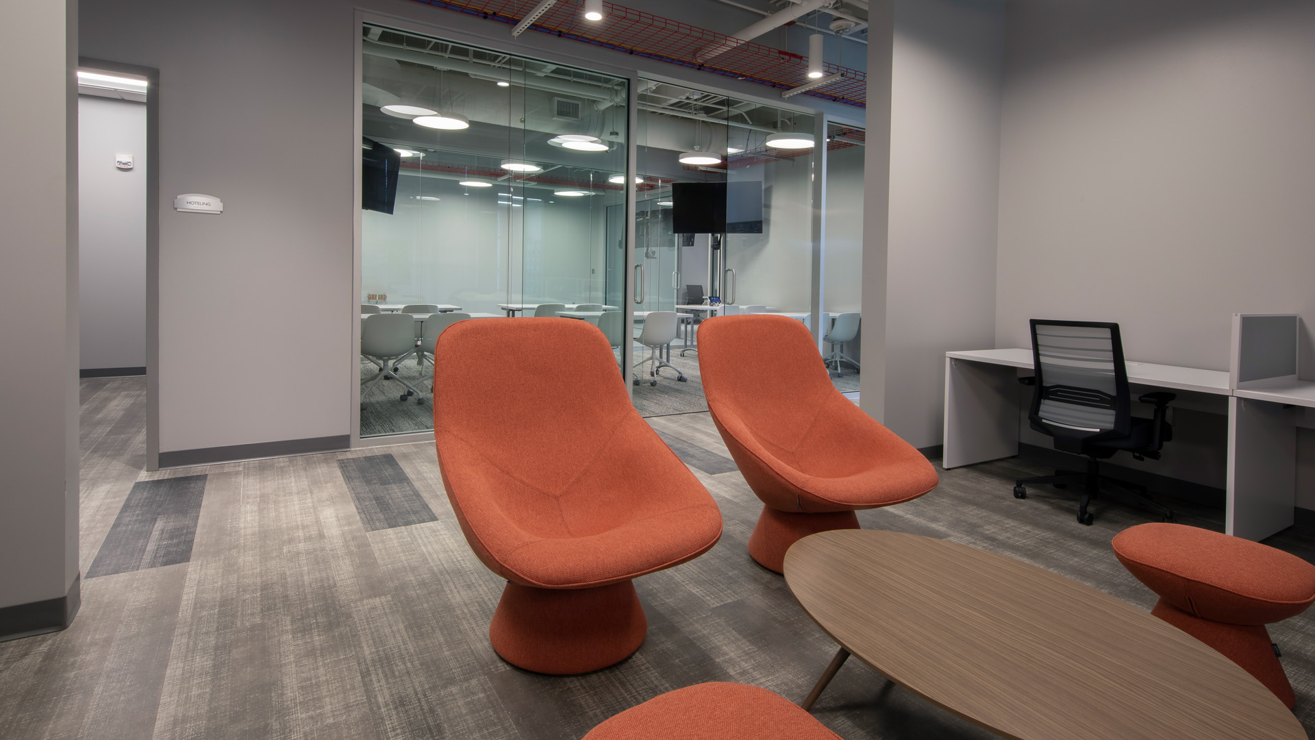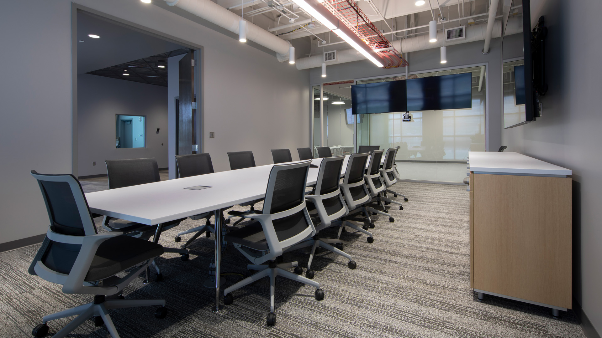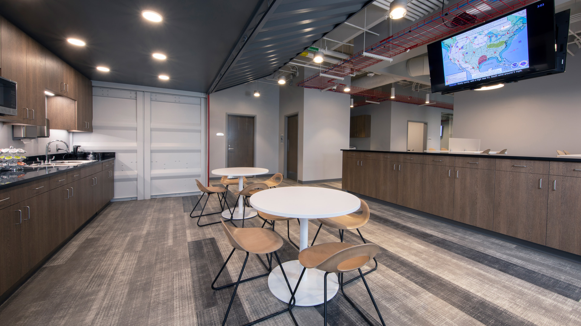 The design accentuates the contrast between the exposed industrial components and concrete structure with the most up-to-date communication, network, and security systems of today.