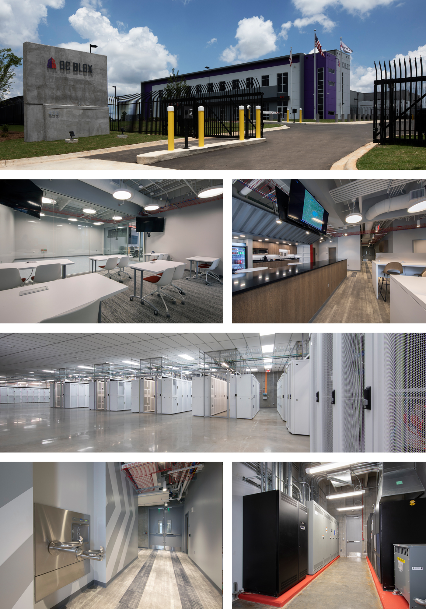 POH+W Architects designed this flagship data center for the Atlanta-based DC Blox. The project was designed with the goal of future phased expansion. POH+W worked closely with consultants to meet Controlled Unclassified Information (CUI Standards) to uphold the importance of security and reliability. The fully monitored center boasts a fully protected private network, and 5MW of customer capacity in a precast concrete shell designed to withstand 150 mph winds. The conference rooms, demo space, hoteling cubes, and workstations comprise a notable office space. The Birmingham location is DC Blox’s fourth data facility, and the second designed by POH+W Architects.