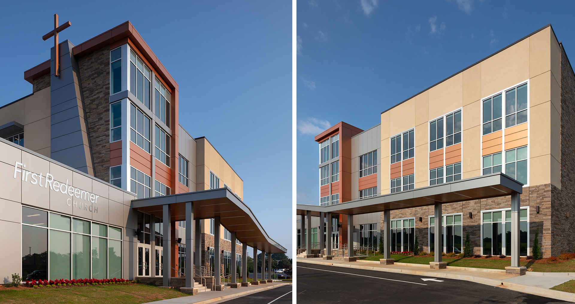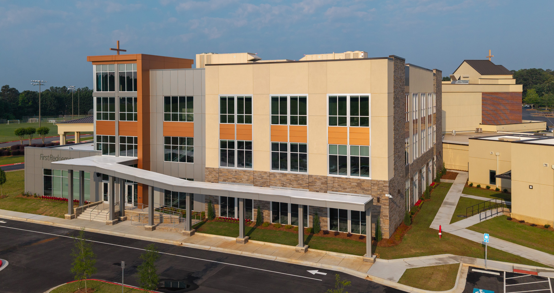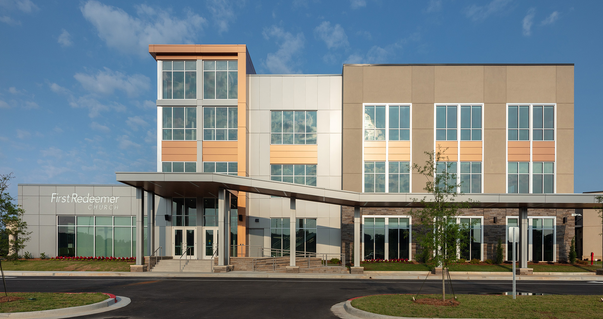 POH+W Architects designed an expansion that represents a significant investment in the growth and well-being of the church community, demonstrating a commitment to lifelong learning and the empowerment of adults in their spiritual journey. The Adult Education expansion to the current church is an exciting and transformative endeavor that aims to provide a welcoming space for adults to gather, learn, and grow in their faith. With the addition of a new entry point, this expansion creates a seamless transition for individuals entering the building, whether they are new visitors or longtime members. The new entryway is designed to inspire and uplift, with an inviting lobby that sets the tone for a meaningful and enriching experience. A dramatic entrance and fellowship area will serve as a focal point, bringing people together and fostering community and connection.