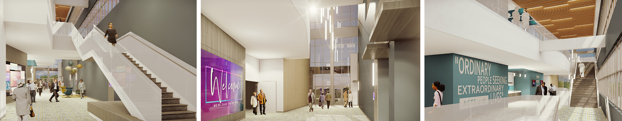 POH+W Architects designed an expansion that represents a significant investment in the growth and well-being of the church community, demonstrating a commitment to lifelong learning and the empowerment of adults in their spiritual journey. The Adult Education expansion to the current church is an exciting and transformative endeavor that aims to provide a welcoming space for adults to gather, learn, and grow in their faith. With the addition of a new entry point to the church, this expansion will create a seamless transition for individuals entering the building, whether they are new visitors or longtime members. The new entryway will be designed to inspire and uplift, with an inviting lobby that sets the tone for a meaningful and enriching experience within the church. A dramatic entrance and fellowship area will serve as a focal point, bringing people together and fostering community and connection.