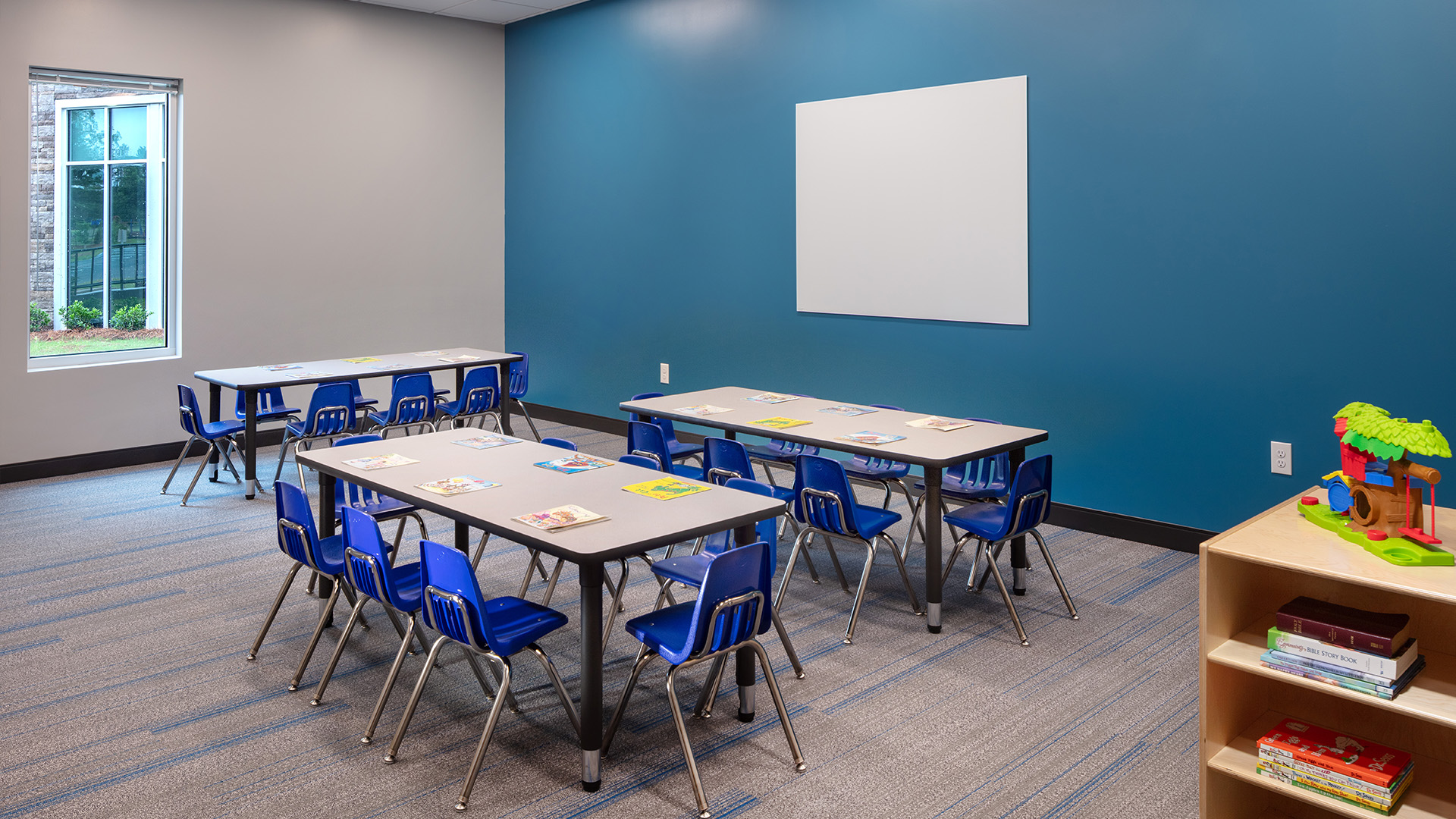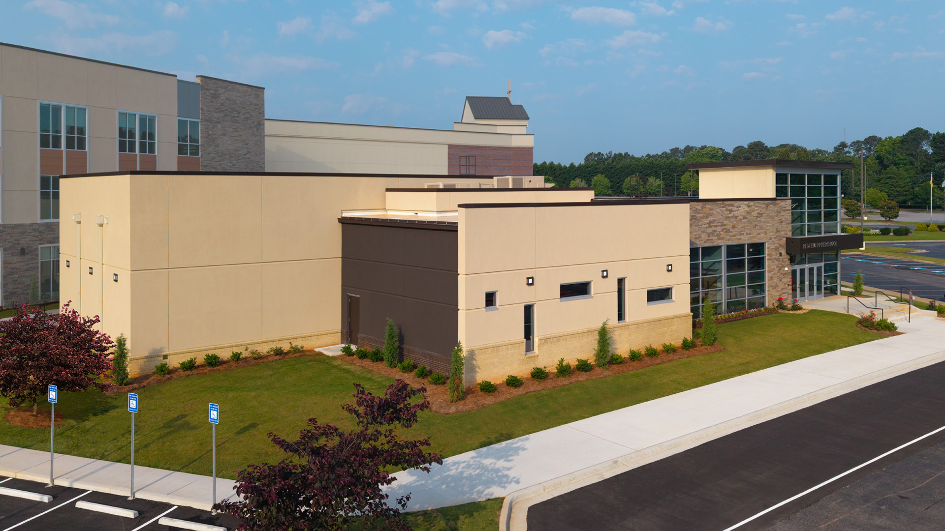 The addition features a worship theater, where children can participate in age-appropriate worship activities, such as singing and storytelling. The theater space supports the church's innovative approach to the development of worship services specifically designed for children.