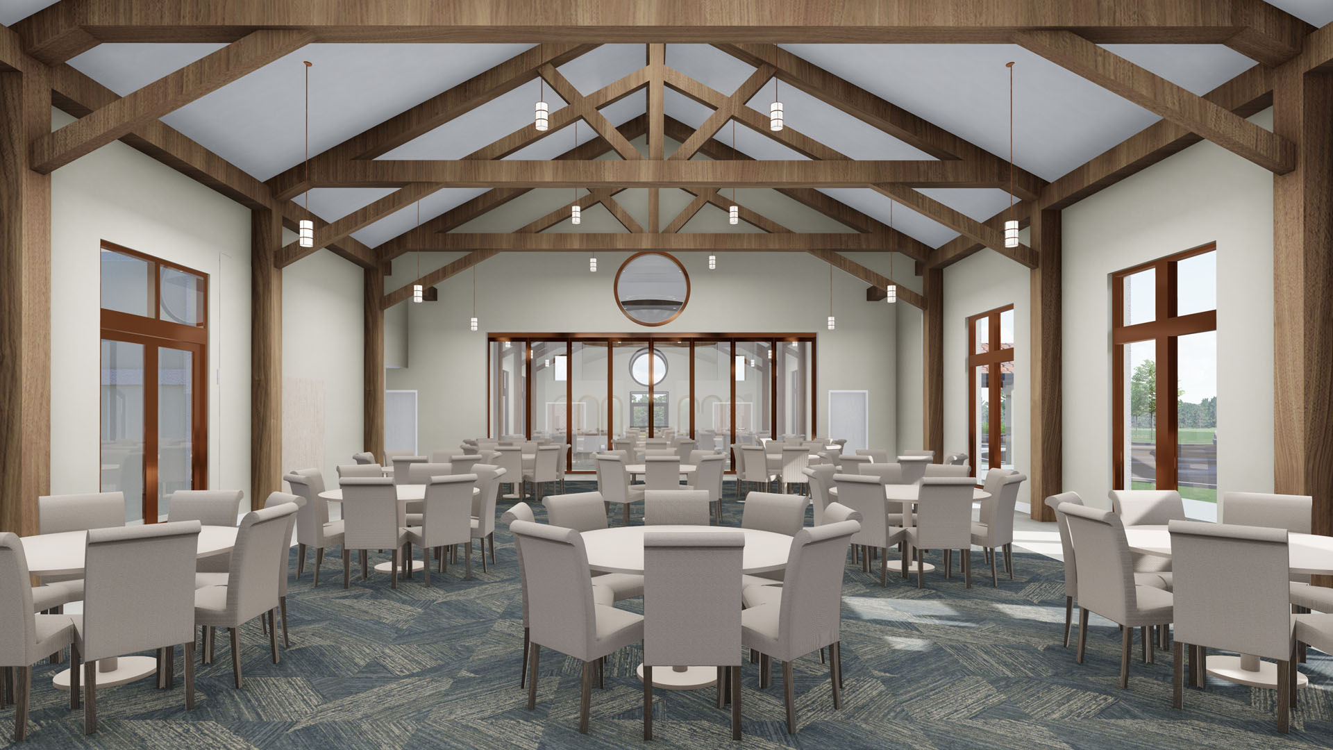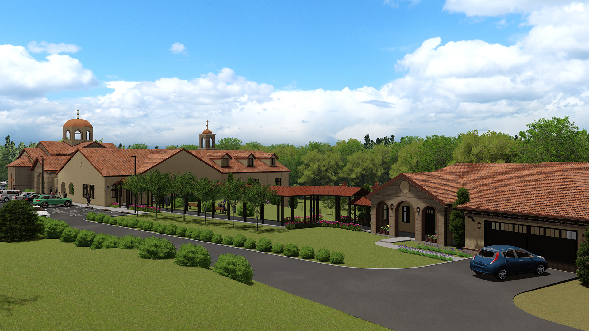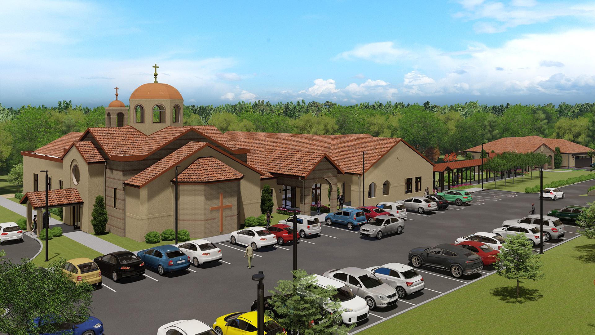 The Metropolis Center prepares to serve as the ceremonial, social, and business center for the Pittsburgh Metropolis. Spanish roof tiles, brick and EIFS facades diversify the exterior. The metal roof dome extending 35’ above the chapel, in addition to the 37’ arched ceremonial tower and dome on the west terrace, create a distinctive look on the new center. The design for the Greek Orthodox Metropolis Center has been an ongoing collaboration since its inception in 2017, with construction scheduled to start in 2023.
