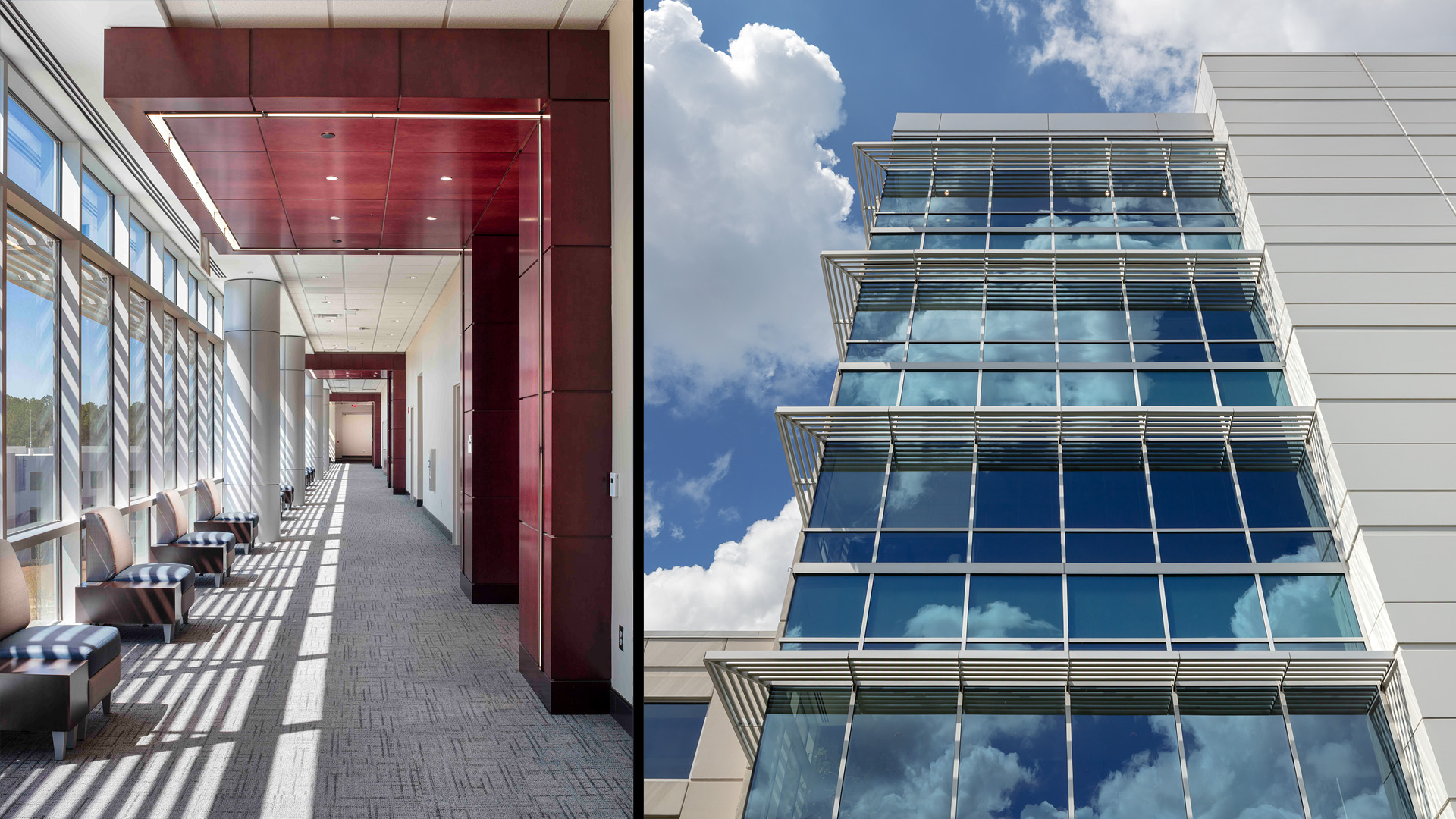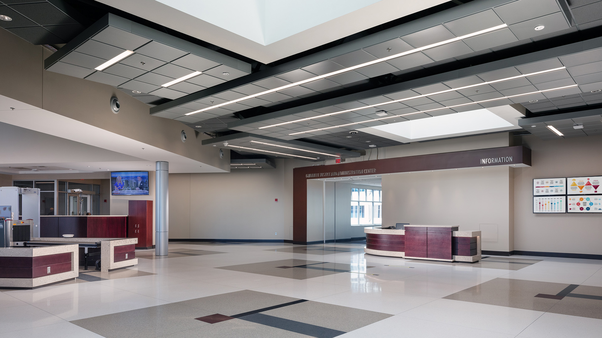 The new courthouse expansion features a fresh facade fronting Nash Street and a new state of the art security entrance directly connected to the new 1500 car parking deck. The exterior design has a modern glass identity while respecting the existing building. Sun shading louvers are among some of the sustainability considerations we utilized on the design of this LEED Certified project.