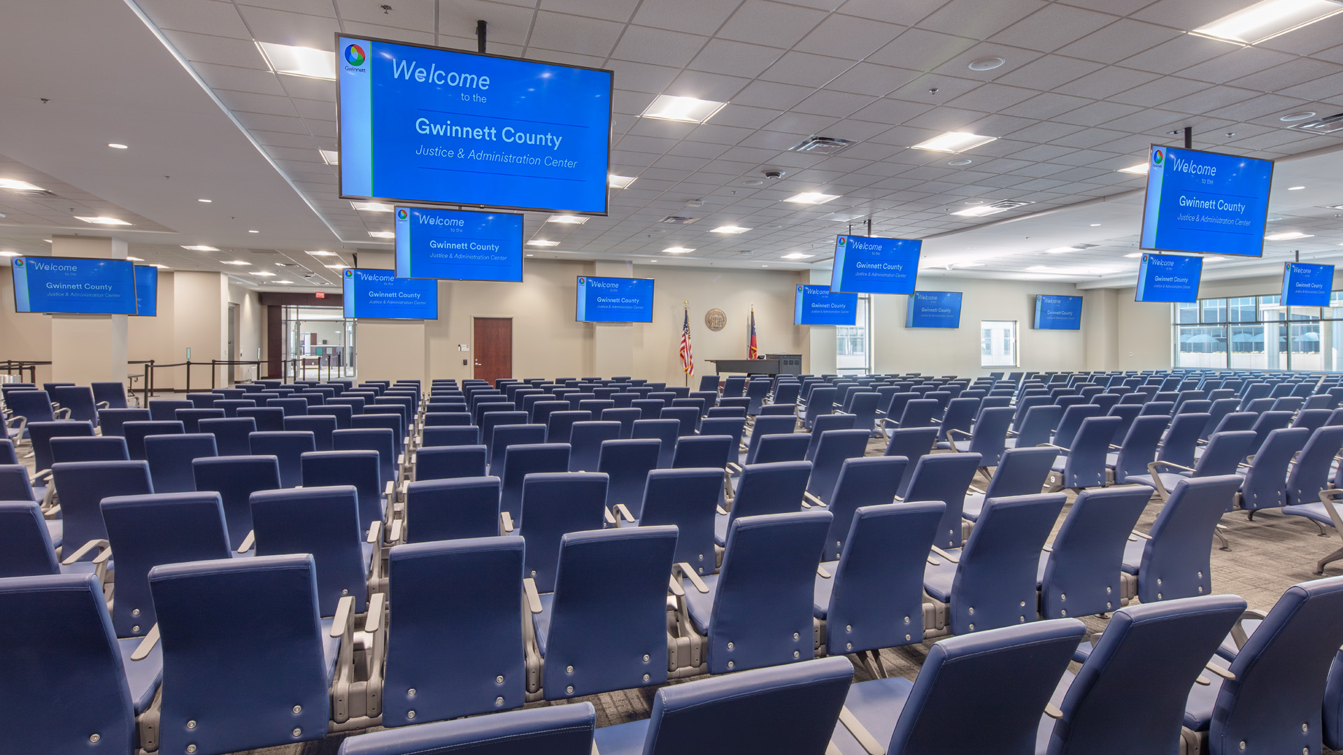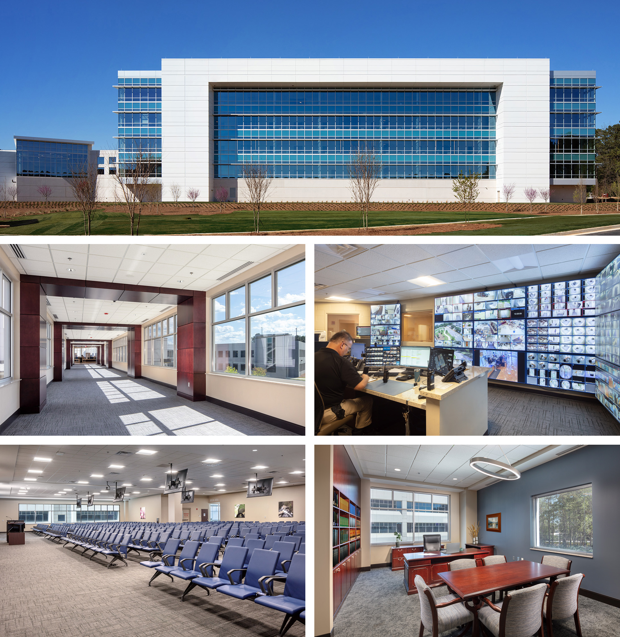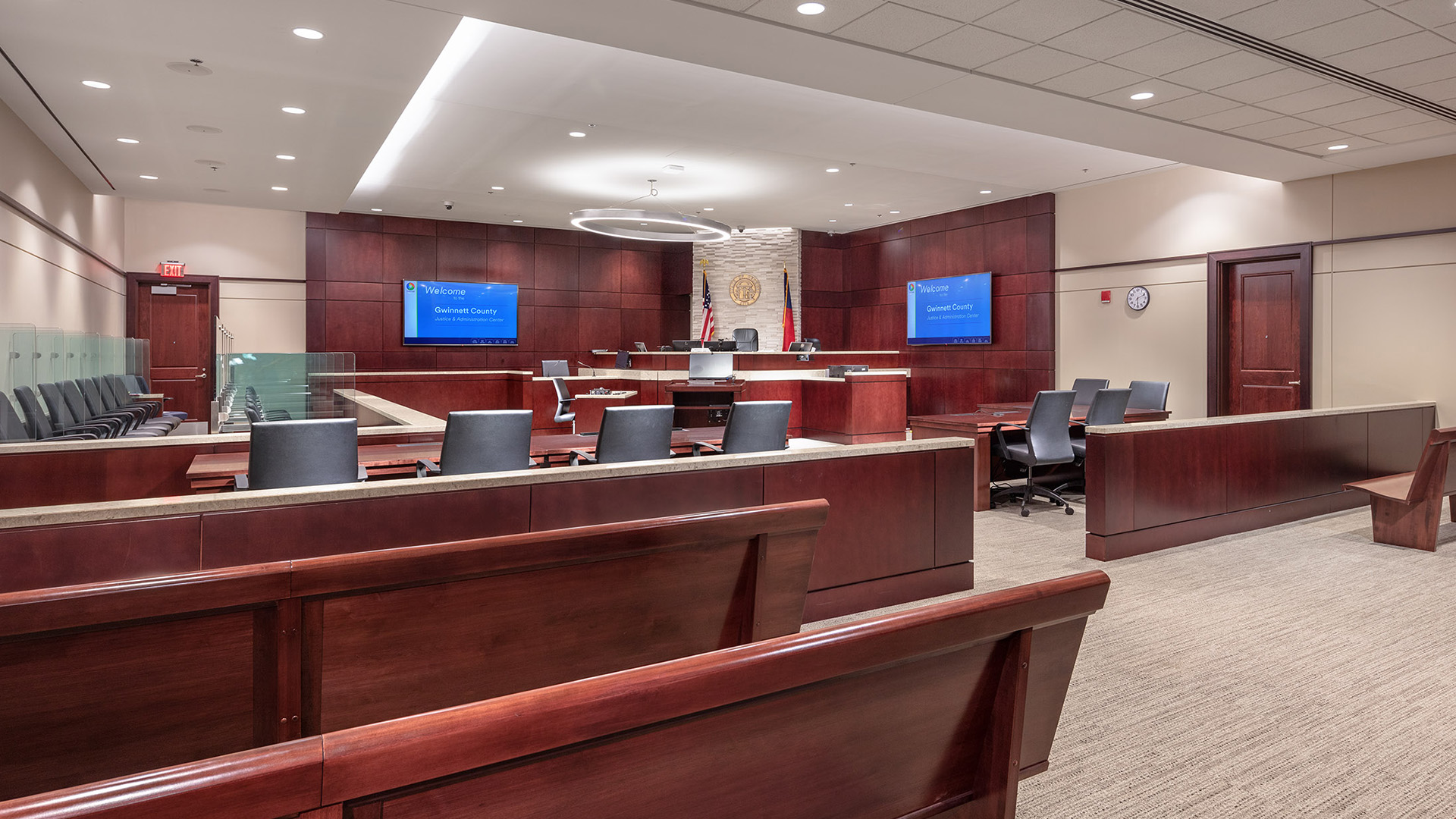 POH+W Architects in association with the DLR Group designed the new courthouse expansion for Gwinnett County. The expansion wing will accommodate six new superior courtrooms with space available for eight additional superior courtrooms in the future, Judges Chambers, a five hundred seat Jury Assembly space directly connected to the Security Entrance, Sheriff Offices, Inmate Holding and Vehicular Sally Port that serves both the new and existing holding areas. The existing and new buildings are connected by enclosed sky bridges.