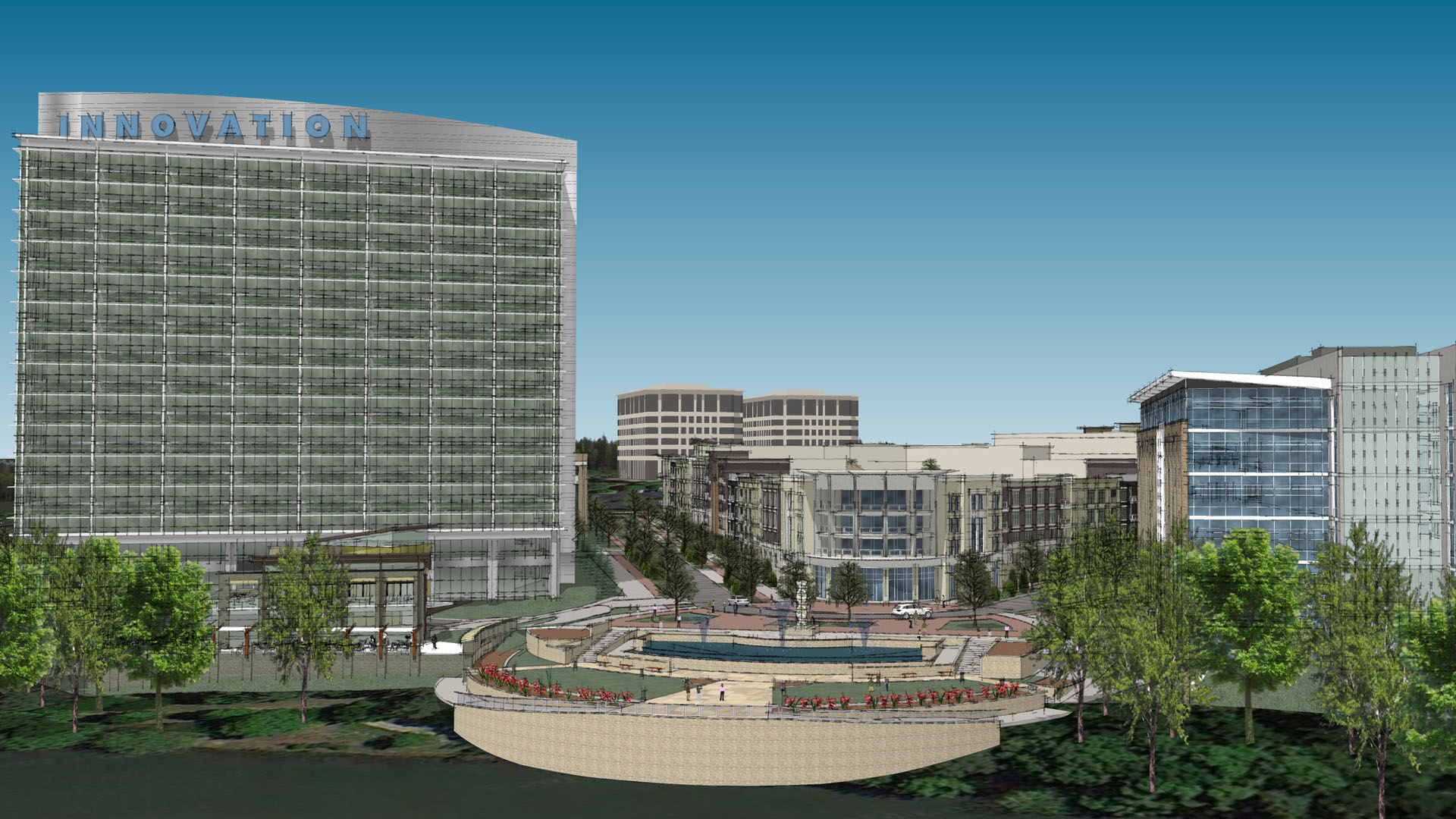 Connecting the apartments, office and retail space was another challenge of the Innovation project. The apartments will have top-notch amenities and a variety of office types will be offered ranging from unique and creative, to top-of-the-line Corporate HQ.