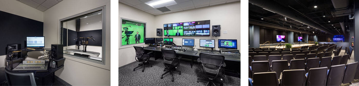 An on-site tv studio, editing suites, and radio studio provide for the mission to create multi-media content. A small prayer chapel, classrooms and a retail bookstore complete the new North American headquarters.