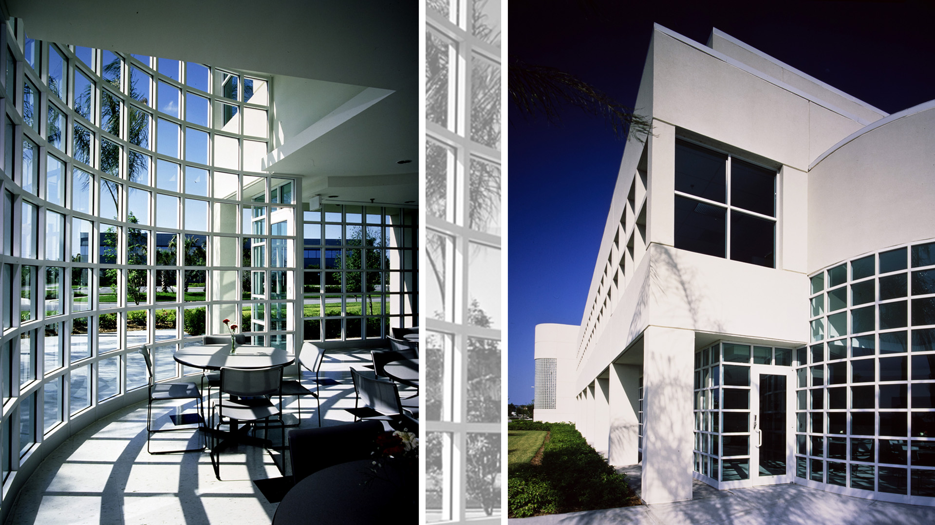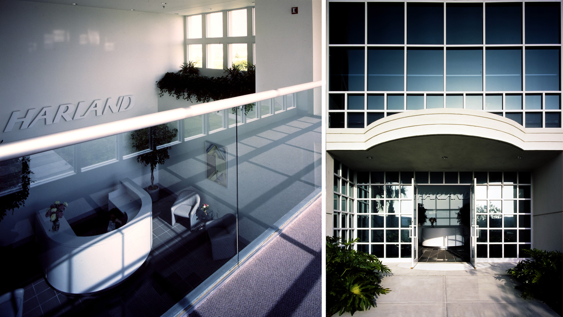 POH+W Architects designed the Miami plant to include production and distribution on the first floor and administration on the upper level. After only three months of occupancy, according to the plant manager, “the new facility, top-of-the-line technology, and sky-high employee morale” had increased production by 18 percent. The facility won a national honor award from the National Association of Industrial and Office Parks. This award-winning facility was designed to house the latest in printing and computer equipment. Its contemporary facade reflects the company’s commitment to technology. At the same time, priority was given to providing a pleasant and attractive work place for Harland’s staff.