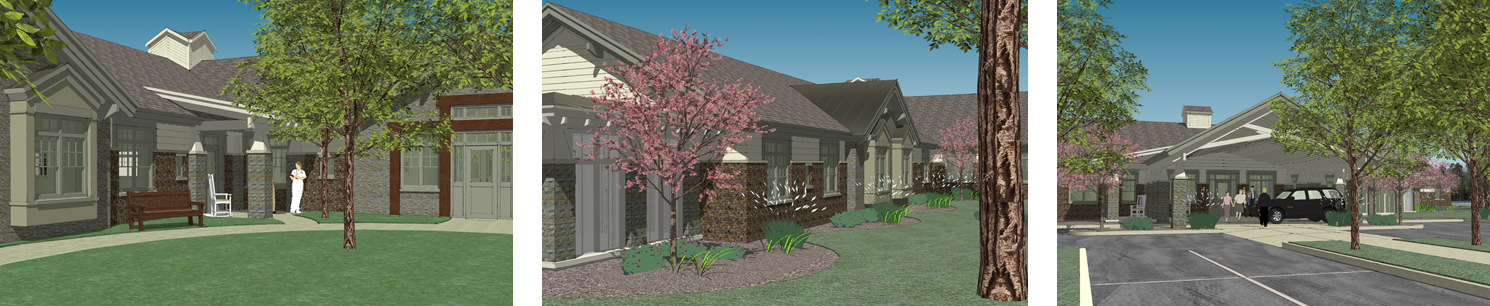 POH+W Architects’ design for this senior living facility implements Craftsman style principals and rustic details. Uplifting warm tones provide comfort for residents throughout. Common spaces for refreshing socialization connect the two wings of patient rooms, while adjacent courtyards flood the spaces with natural light. Two nurses’ station centralize the development and offer efficient staff observation of residential corridors. The construction of this 1-story, wood-framed structure optimized cost.