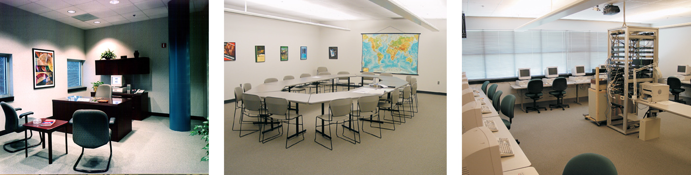 A high-tech aesthetic was developed by expressing the structural elements and celebrating the composition of massing. Natural daylight is part of nearly every interior space. The learning environments were designed to be flexible as programs change over time.