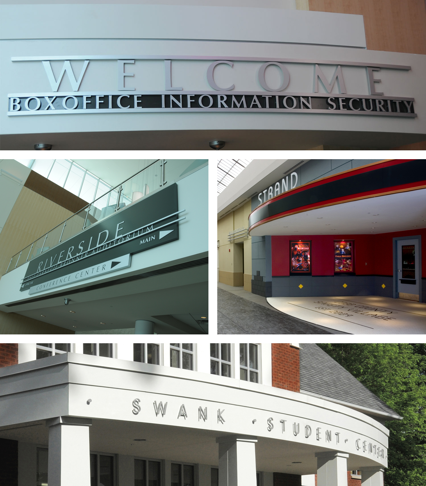 POH+W Architects' Graphic Design Studio designs marquee signage for a wide range of clients, including educational, cultural, and governmental organizations. A marquee sign is often the first visual cue that announces to visitors and clients that they have arrived.