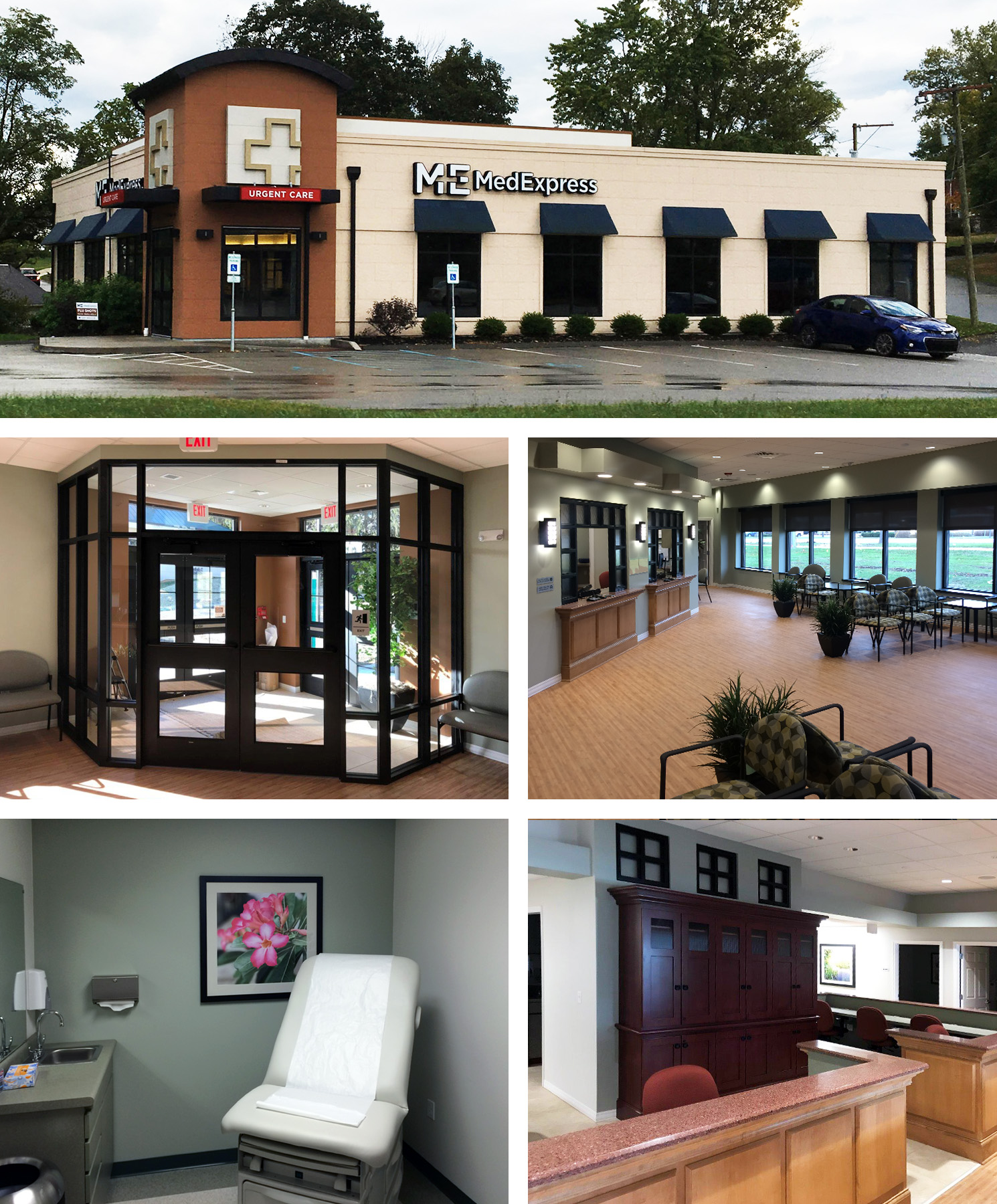 POH+W Architects collaborated with MedExpress to implement their aggressive expansion program. The design modified the prototype to accommodate an existing building, requiring an efficient design to provide fast, high-quality care to patients. Within 5,000-SF, the MedExpress building operates with eight exam rooms and urgent care facilities.