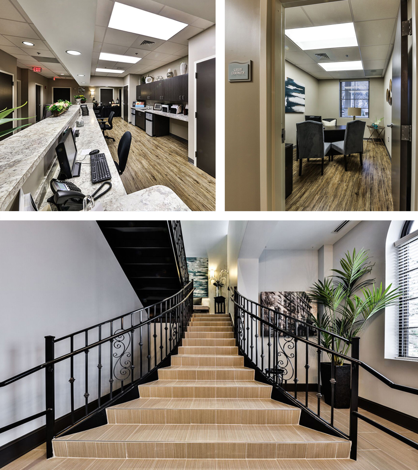 Two operating rooms, pre-op and post-op space maximize efficiency with a thoughtful layout. While the upper level presents tenant space, the comfortable waiting room centralizes the consultation rooms on the middle level. The lower level offers a private exit from the center.