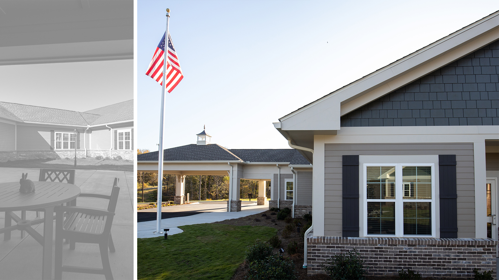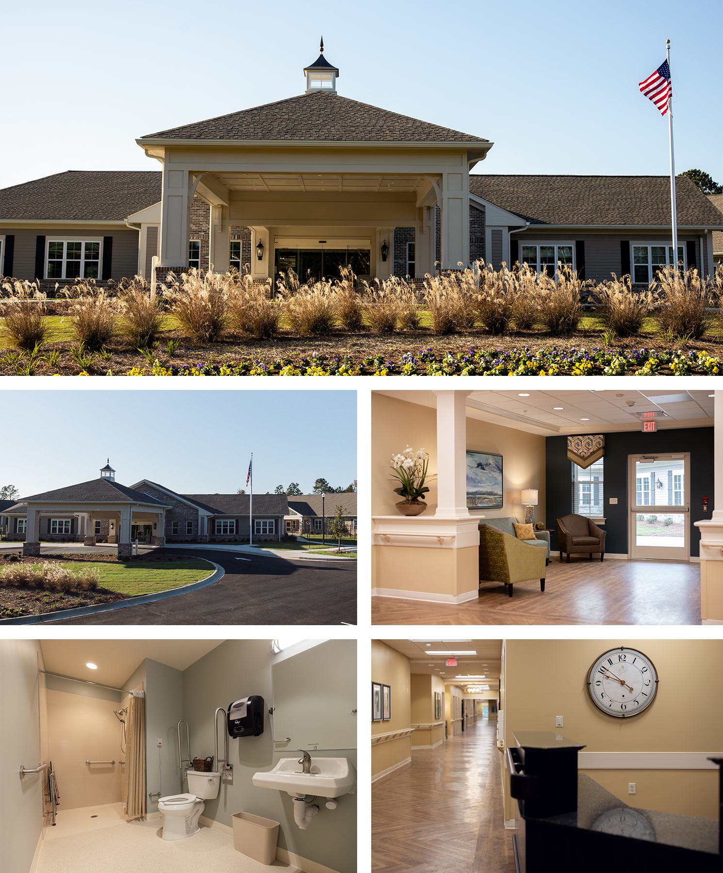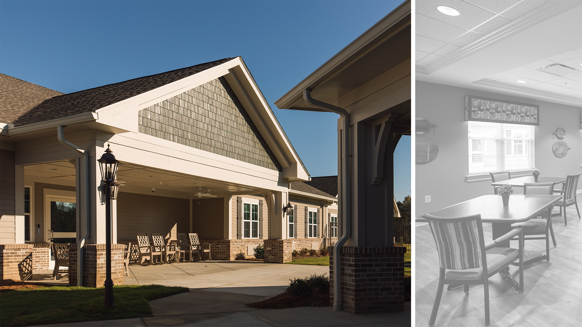 The design encompasses shared and private patient rooms. The private rooms with a shared bath suite offer amenities such as privacy, own window, increased clothing storage, individual climate control, and TV. A separate 4,000-SF Butler type metal building was designed to house storage, maintenance, and a training room. The interiors of these spaces are finished with a warm inviting approach to provide the utmost comfort to the clients.