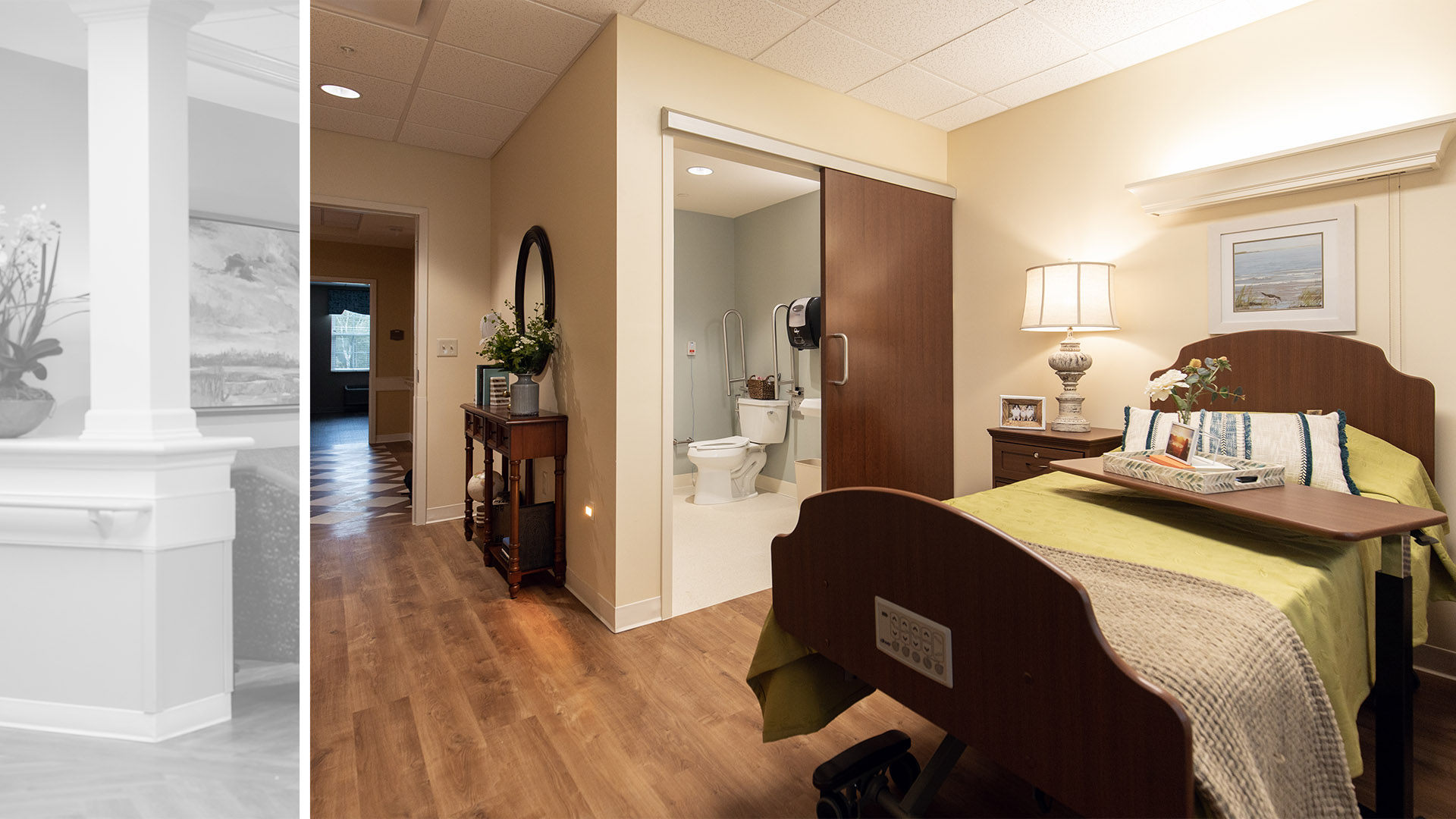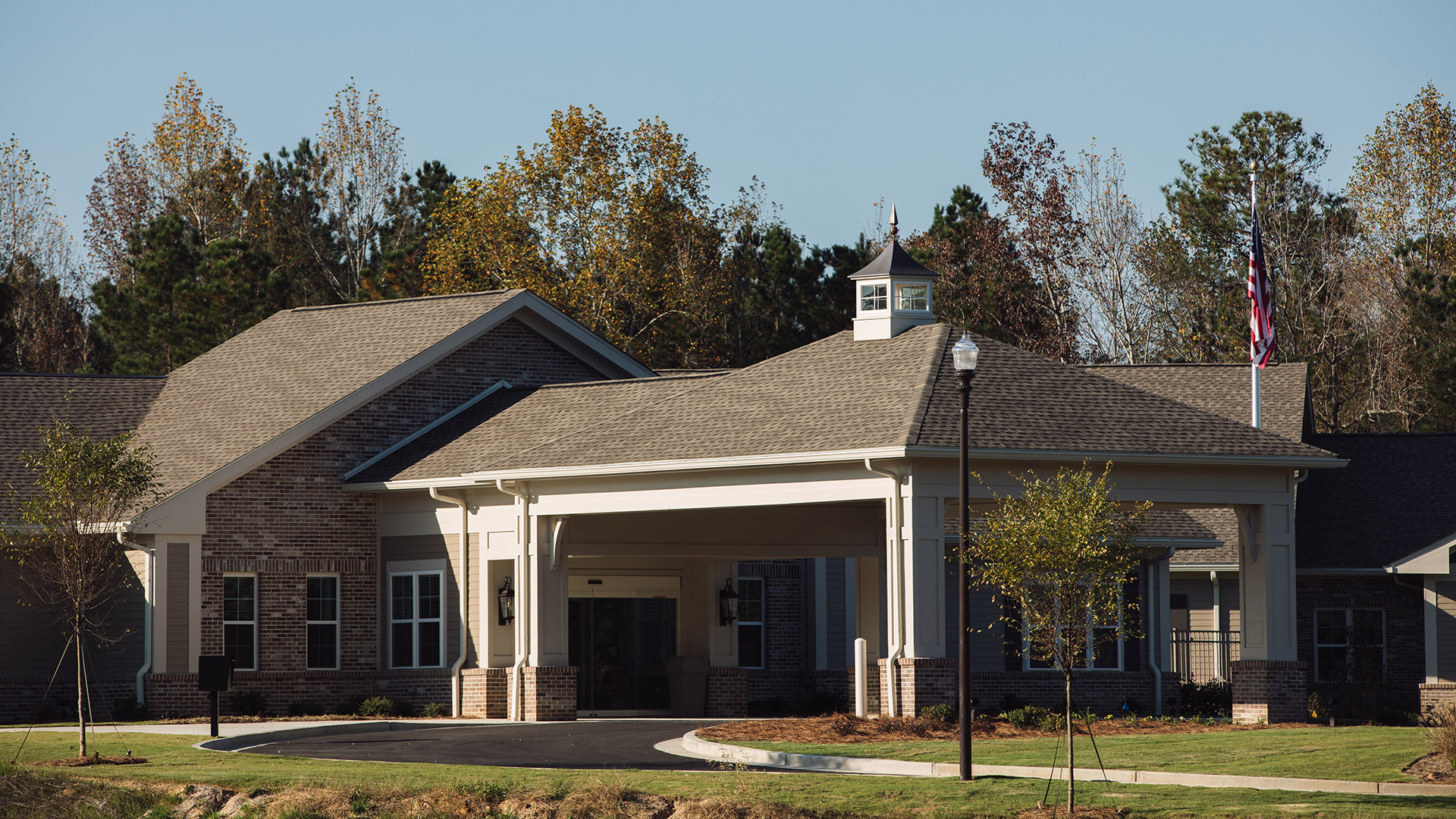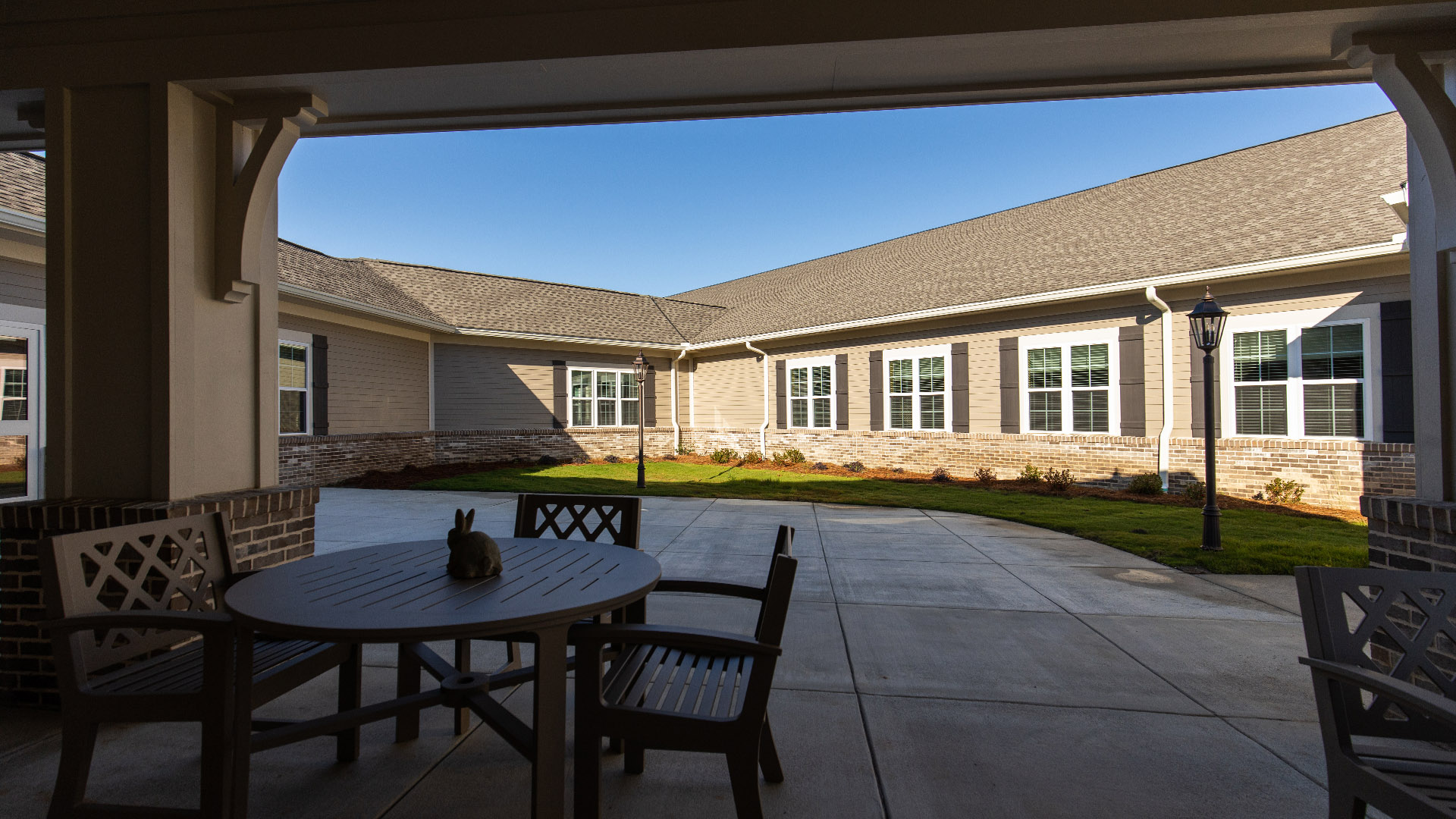 The design encompasses shared and private patient rooms. The private rooms with a shared bath suite offer amenities such as privacy, own window, increased clothing storage, individual climate control, and TV. A separate 4,000-SF Butler type metal building was designed to house storage, maintenance, and a training room. The interiors of these spaces are finished with a warm inviting approach to provide the utmost comfort to the clients.