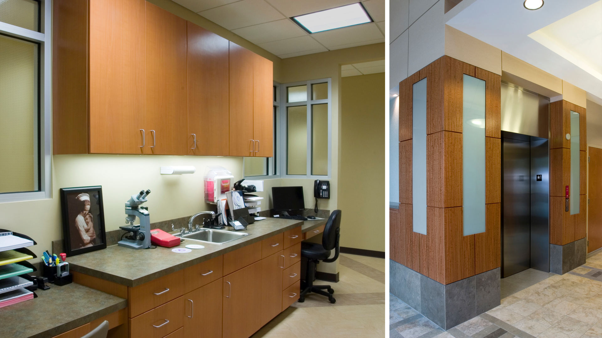 POH+W Architects designed this medical office space that supports an assortment of medical practices. The flexible design accommodates each practices’ day to day operations. The warm tones curated in the design encourage comfort for incoming patients.