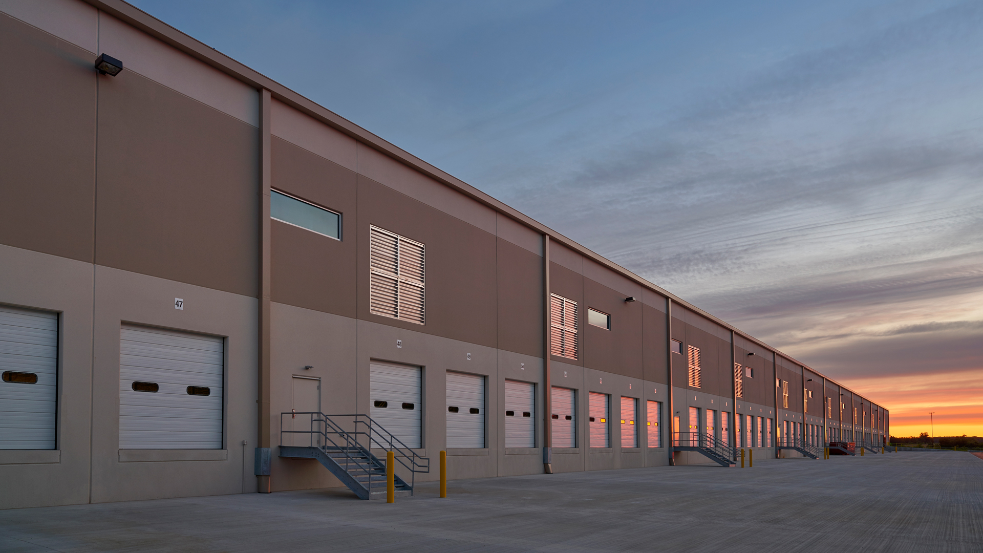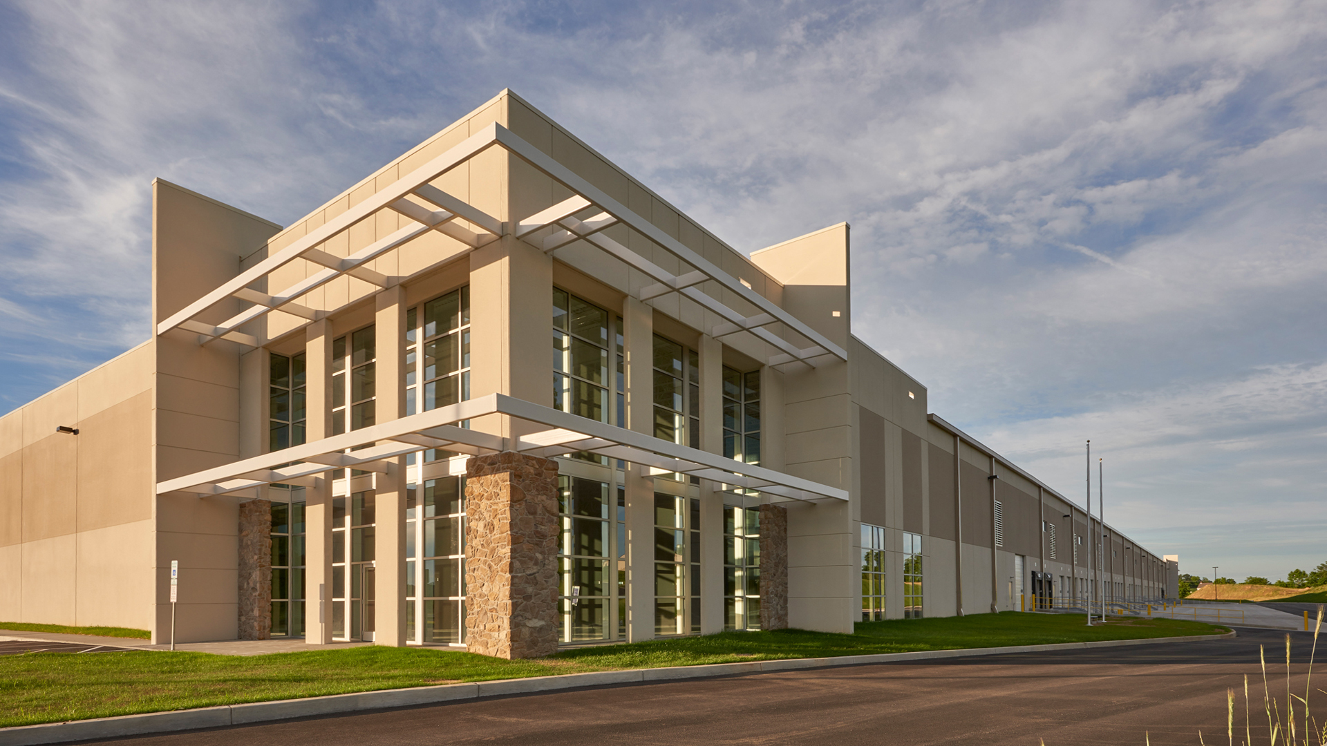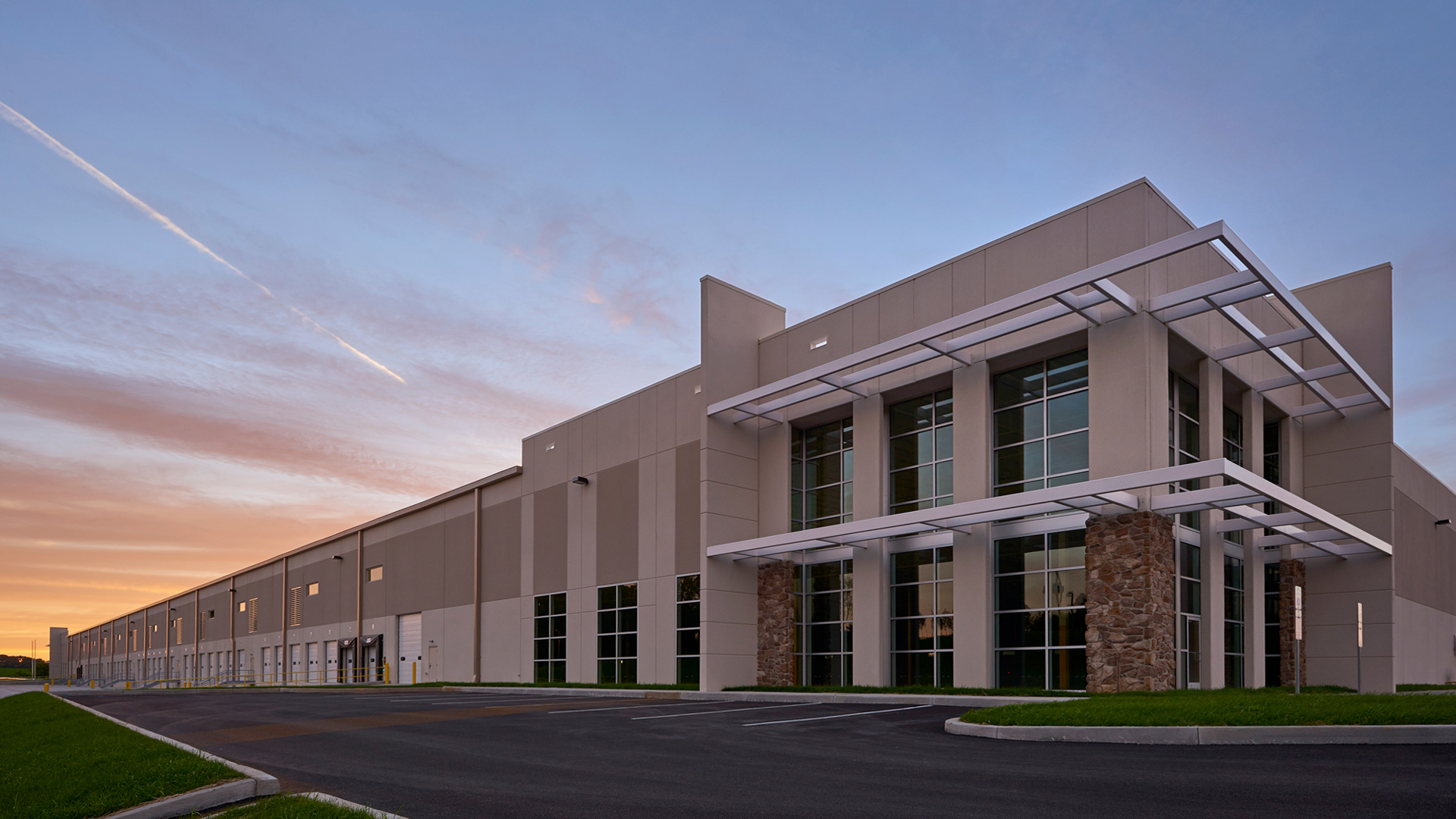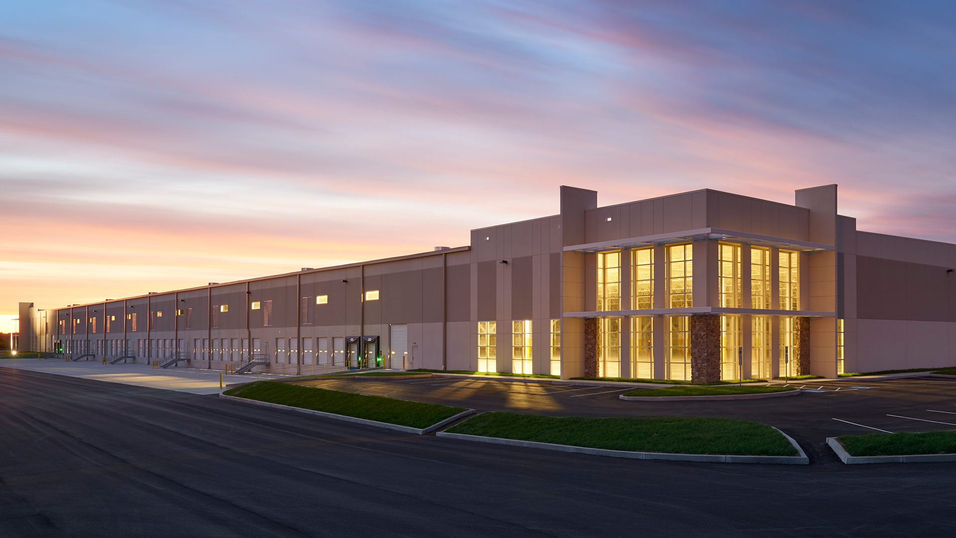 POH+W Architects designed this award-winning speculative cross-dock facility. An efficient, functional layout, of the 32-foot clear heights facility accommodates 87 docks doors, 146 trailer spaces, and abundant car parking.