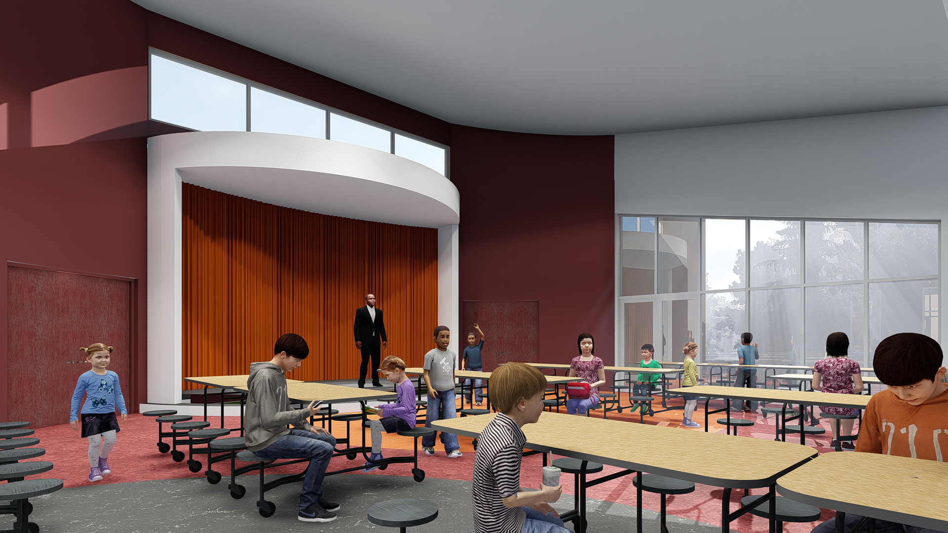 The renovation included a dynamic interior design, developed to support the school’s vision with interesting classroom shapes and colors to stimulate the learning environment.