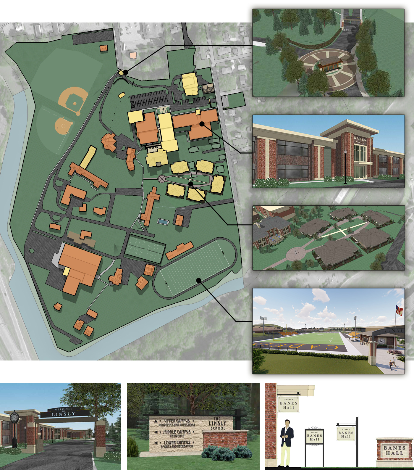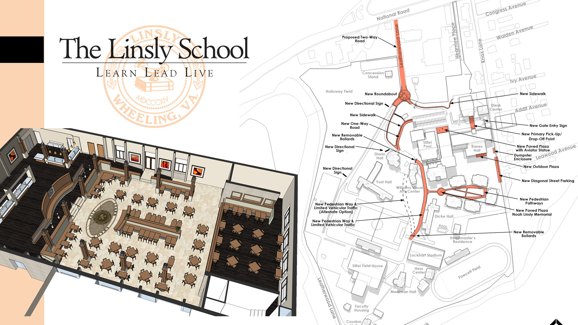 POH+W Architects designed this campus Master Plan for The Linsly School proposing several new and exciting steps for the future. The intention of these enhancements is to improve the campus in a way that creates a sense of unification between the existing architectural styles as well as a cohesive and better functioning campus.