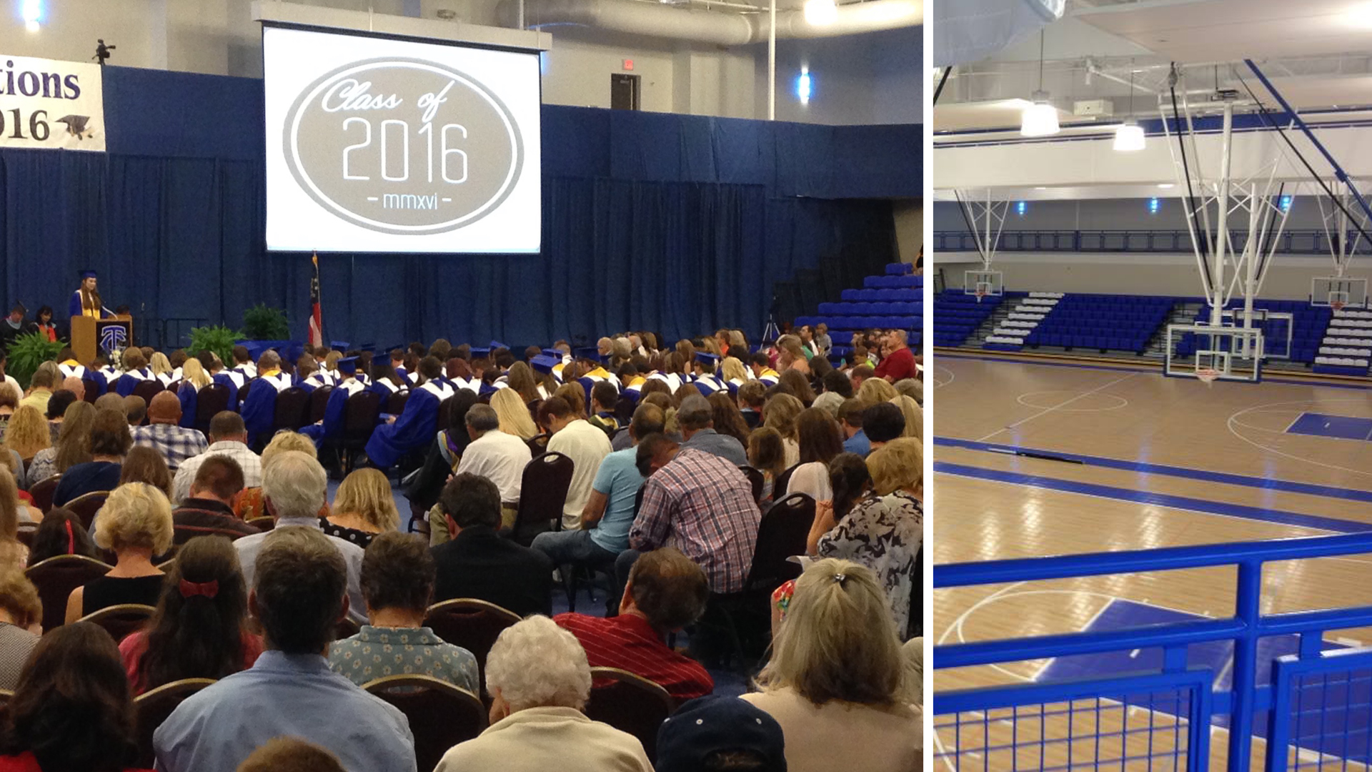 The backdrop of the North Georgia Mountains and the picturesque scenery of Late Chatuge combine to create the ideal setting for this center. The multi-purpose venue features two, full-sized basketball courts that configure into four, various-sized spaces, physically and acoustically subdivided to host presentations, seminars, and dances.