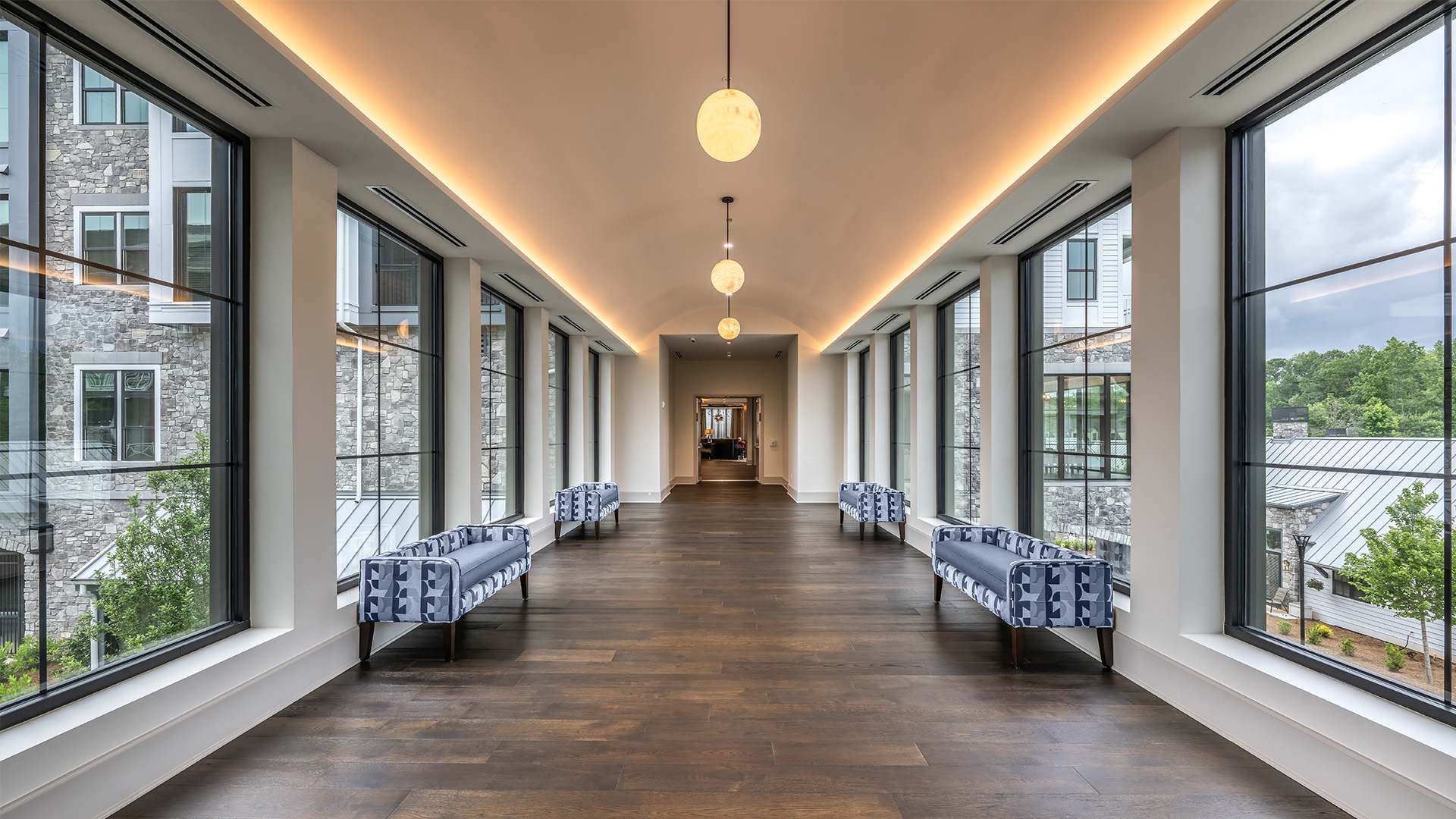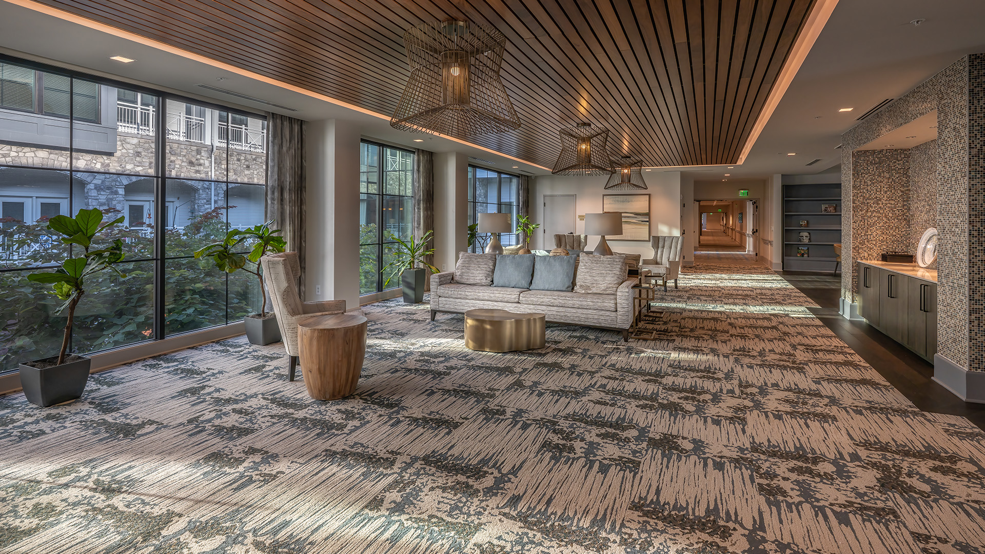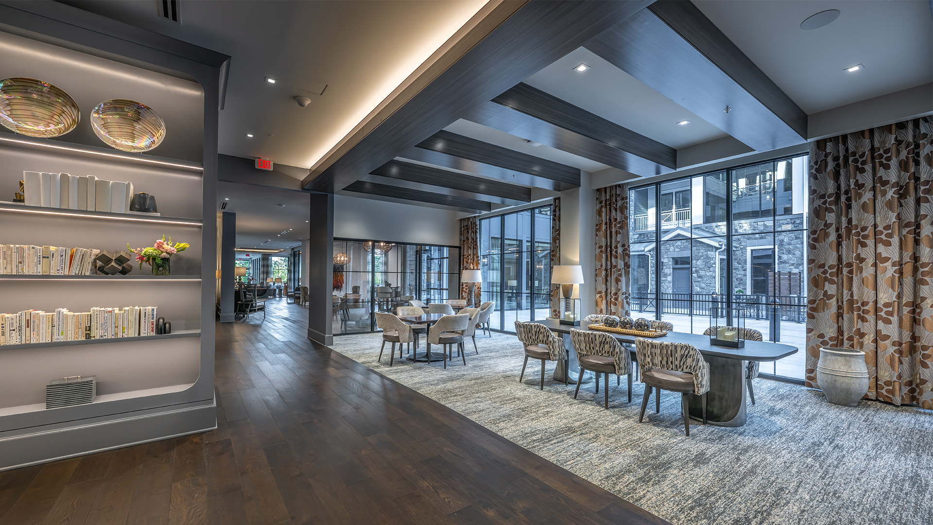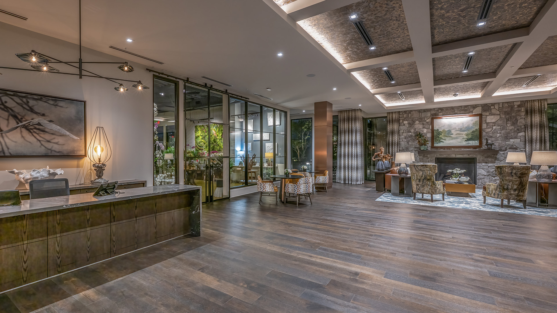 POH+W Architects collaborated with the client on this four-story senior living expansion project. The expansion accommodates 12 one-bedroom units and 51 two-bedroom units. Each unit features the latest home design and finish trends. All ground floor units are designed to function as “City Homes”. A bistro dining experience with a cozy fireplace is located on the ground floor while the upper floors offer large gathering spaces for reading, games, and fellowship. An on-site florist shop provides floral arrangements and gifts for guests and residents. A sunroom was created to feature an open, airy space with lots of natural light and seating for residents to enjoy the “Living Wall” of seasonal plantings.